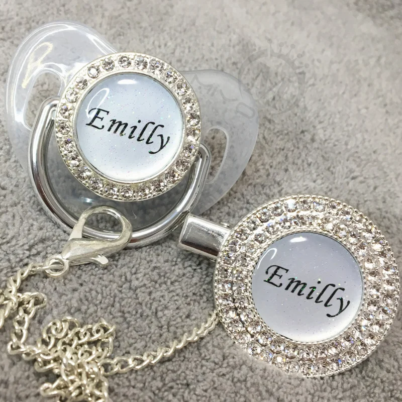 MIYOCAR на заказ любой блеск с возможностью нанесения собственной фотографии логотипа Ясно bling соски-Пустышки и соски-пустышки серебряный зажим без добавления бисфенола А манекен с сияющими блестками Дизайн P1-1-BG