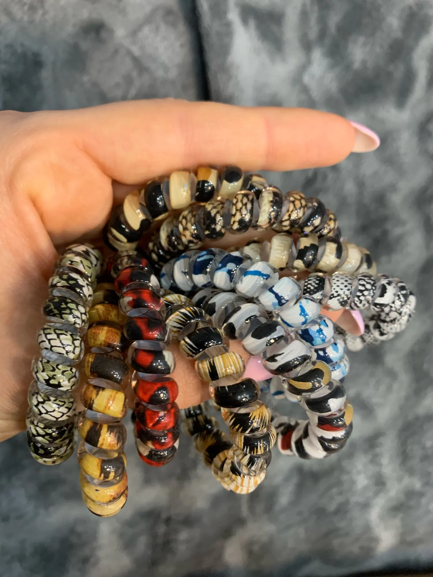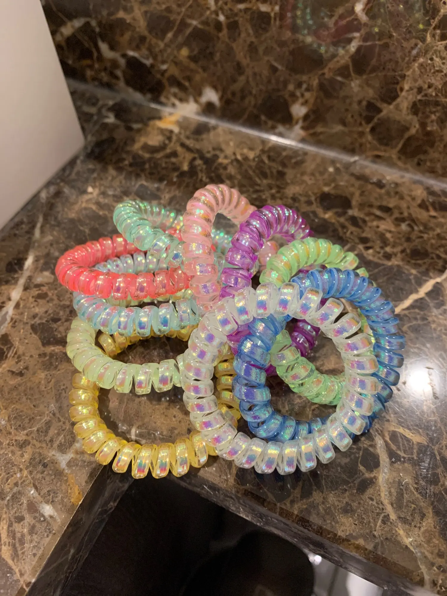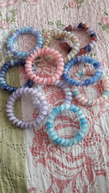 Очень красивые металлические и блестящие цвета. Резины толще, чем я ожидал, и мы привыкли к Испании, но мне кажется, что-то негативное. Они устойчивы и хорошо растягиваются. Они хорошо держат волосы. Очень хорошее качество и очень красивый. Нет связи с продавцом, заказ получен без происшествий