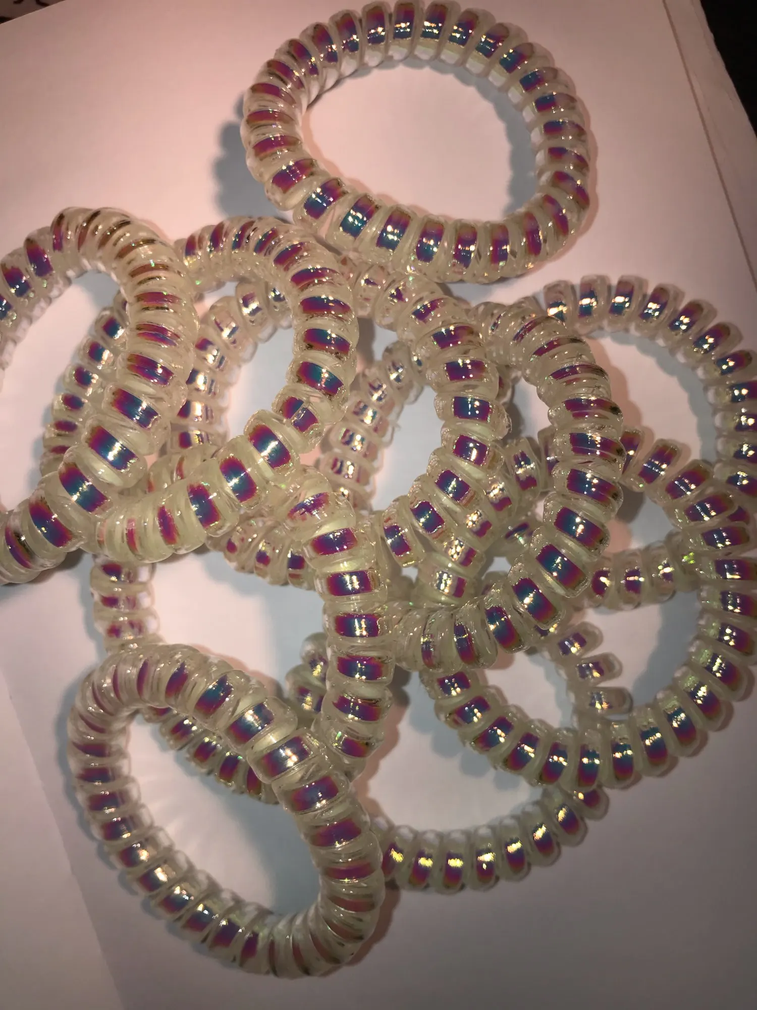 Я люблю их, они такие Веселые! Я могу найти их в темноте, и они сделают хороший старт для разговора. Очень хорошо светится, в свете они имеют дихроический цвет. У меня густые длинные волосы, они хорошо держатся и не тянутся.