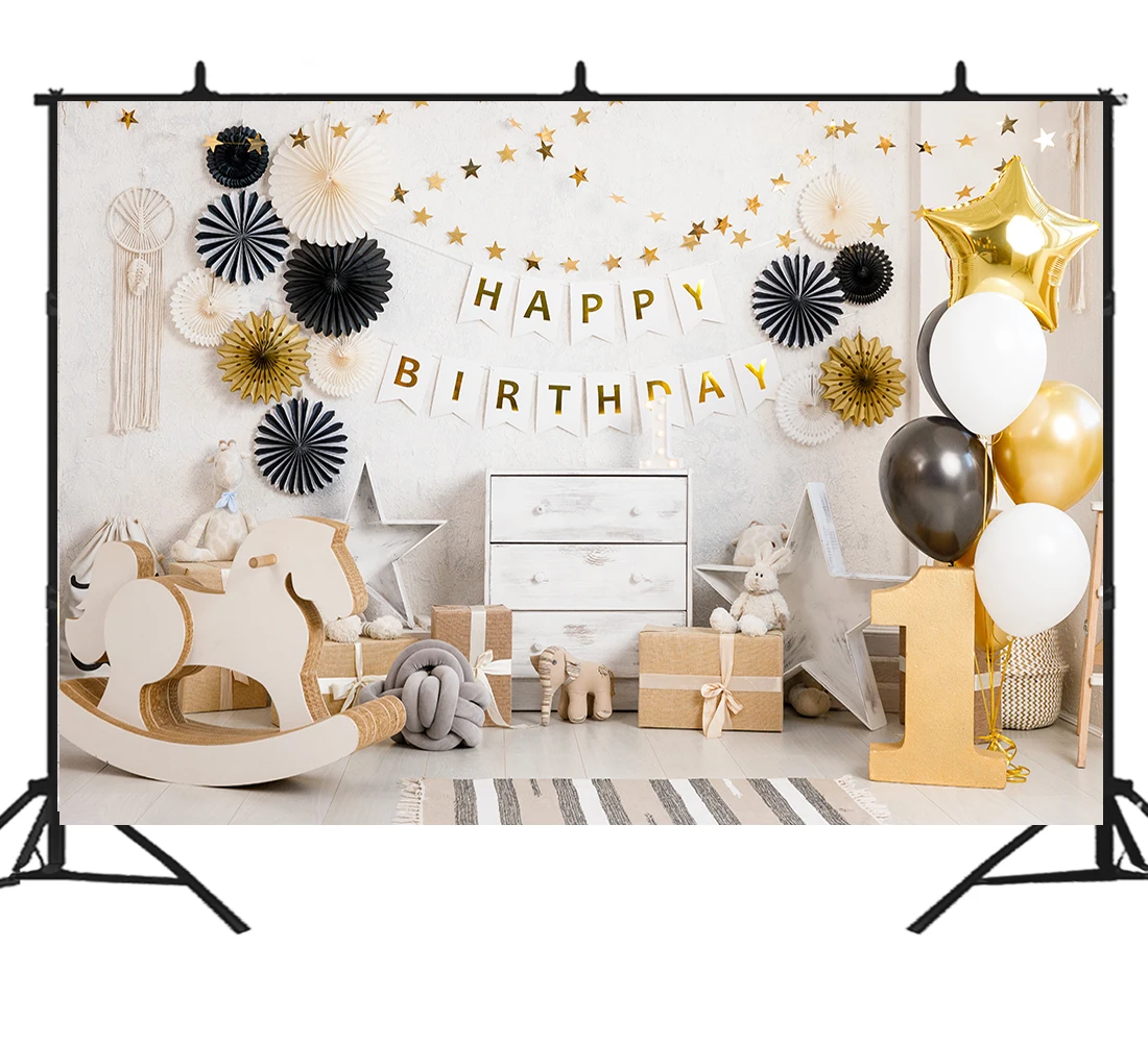 Фон для фотосъемки детей на 1-й день рождения с воздушным шаром Миш...