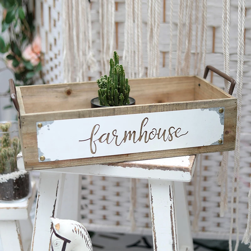Прямоугольные деревянные фермерские коричневые винтажные садовые ящики