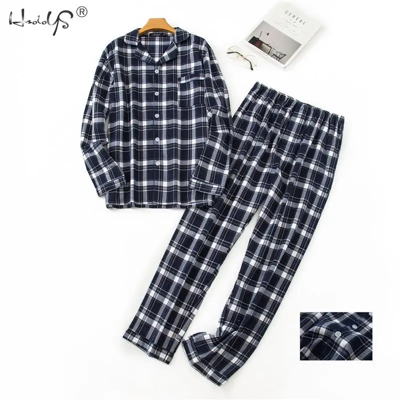 Мужская клетчатая Пижама на пуговицах, хлопковый пижамный комплект, рубашки с длинным рукавом и длинные брюки, комплект из 2 предметов, одежда для сна, домашняя одежда, комплект Pj