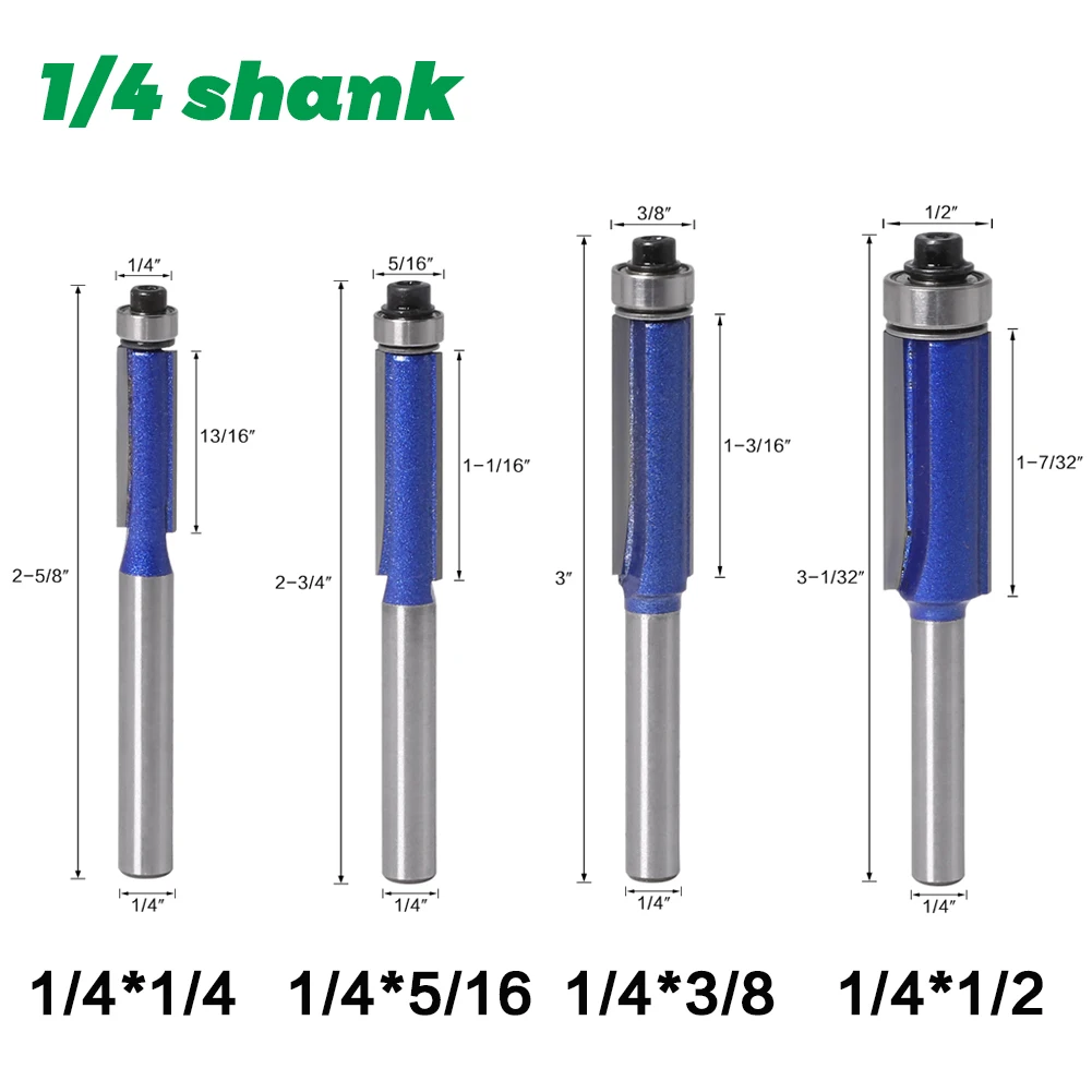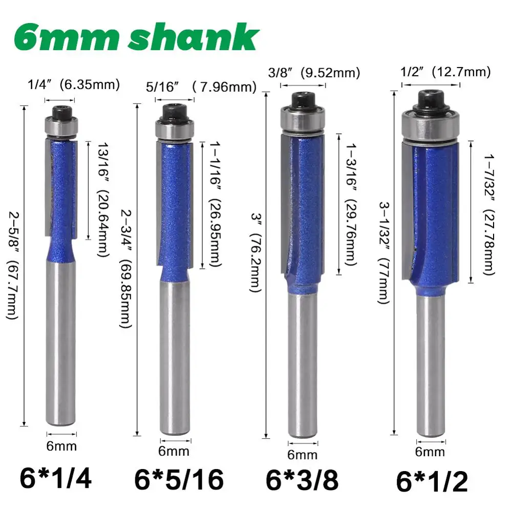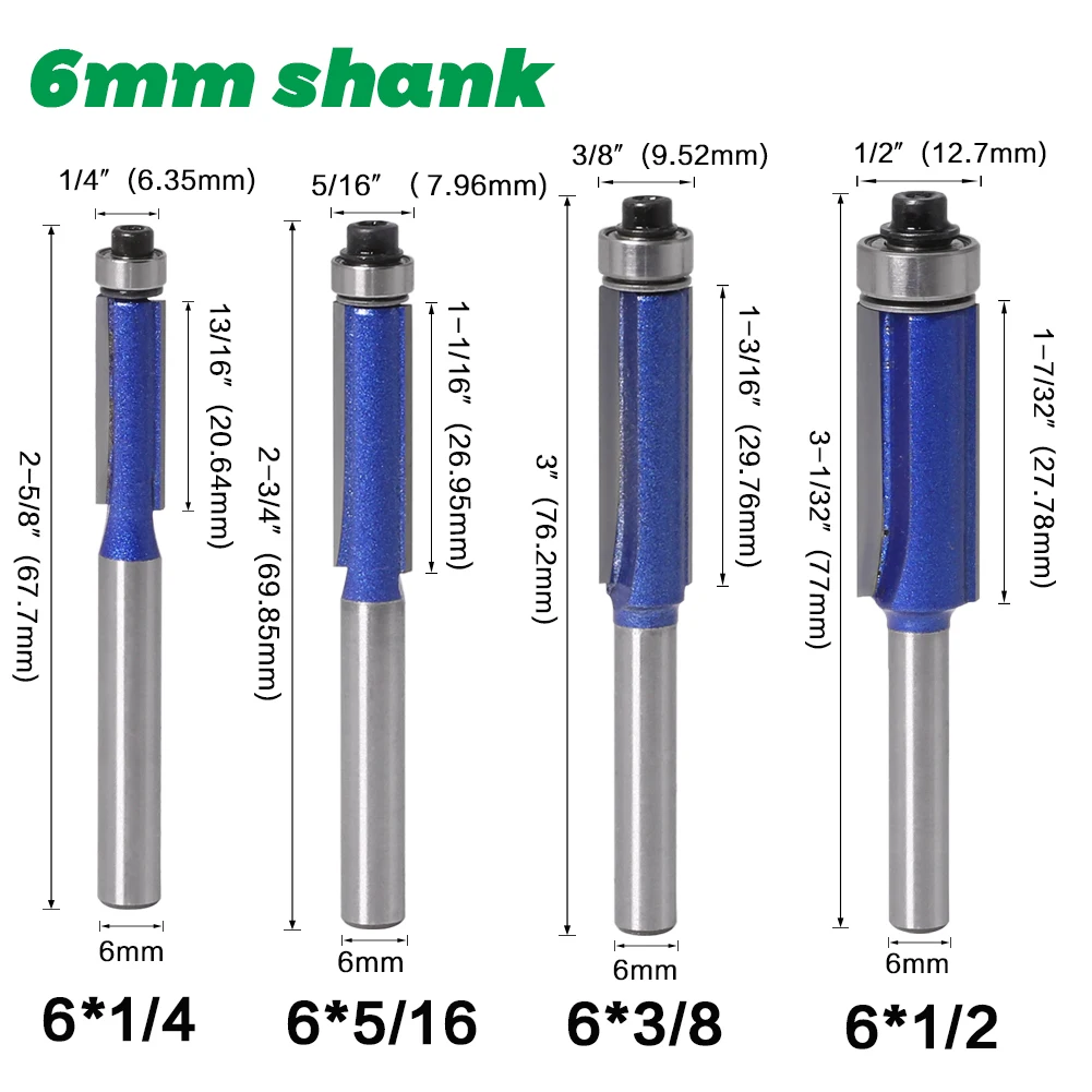 Фреза с хвостовиком 14, хвостовик 6 мм, насадка для обрезки с подшипником для шаблона по дереву, карбид вольфрама, фреза для дерева, 1 шт.