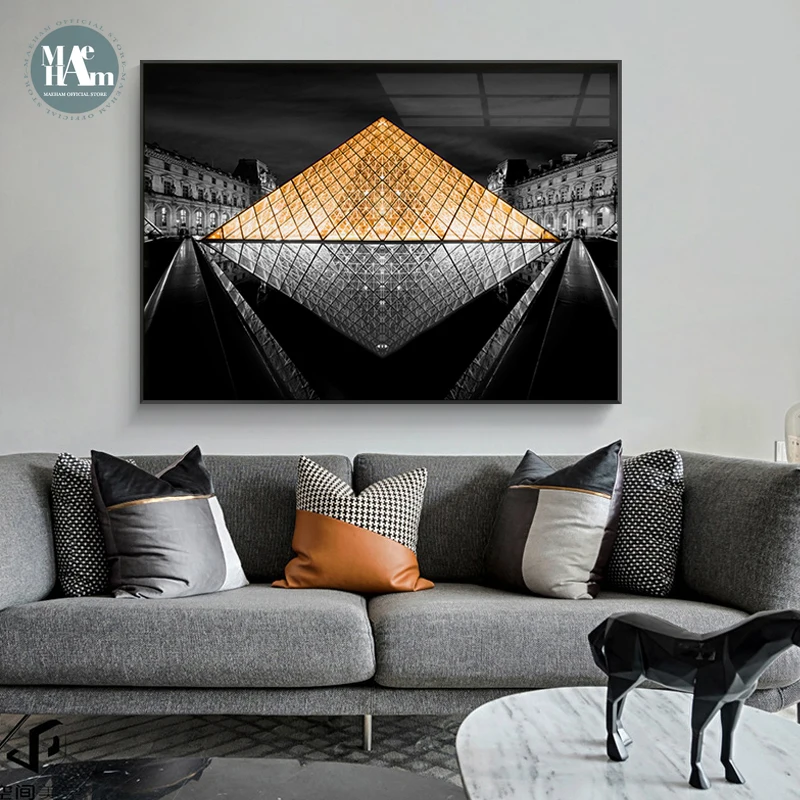 Скандинавский черно-белый пейзаж здание дворца настенная живопись холст плакат горизонтальная печать для гостиной столовой Декор
