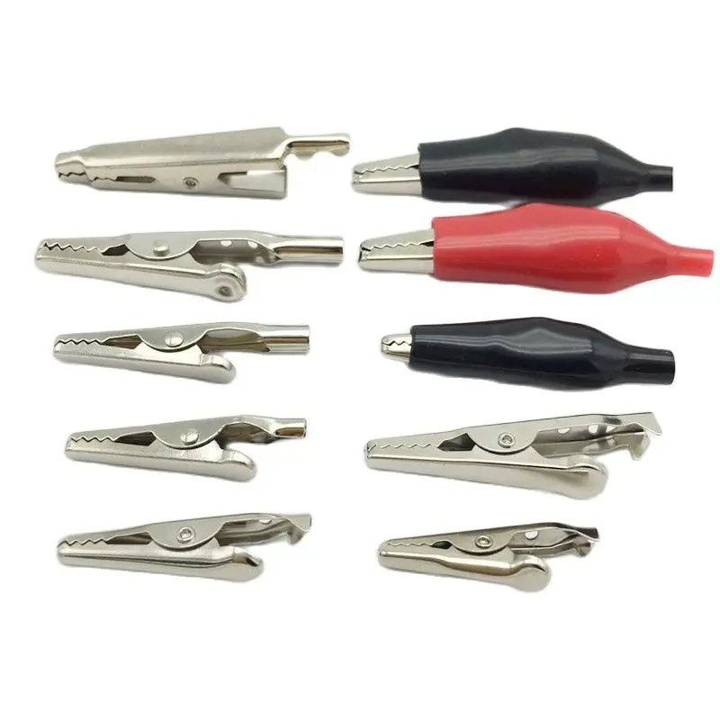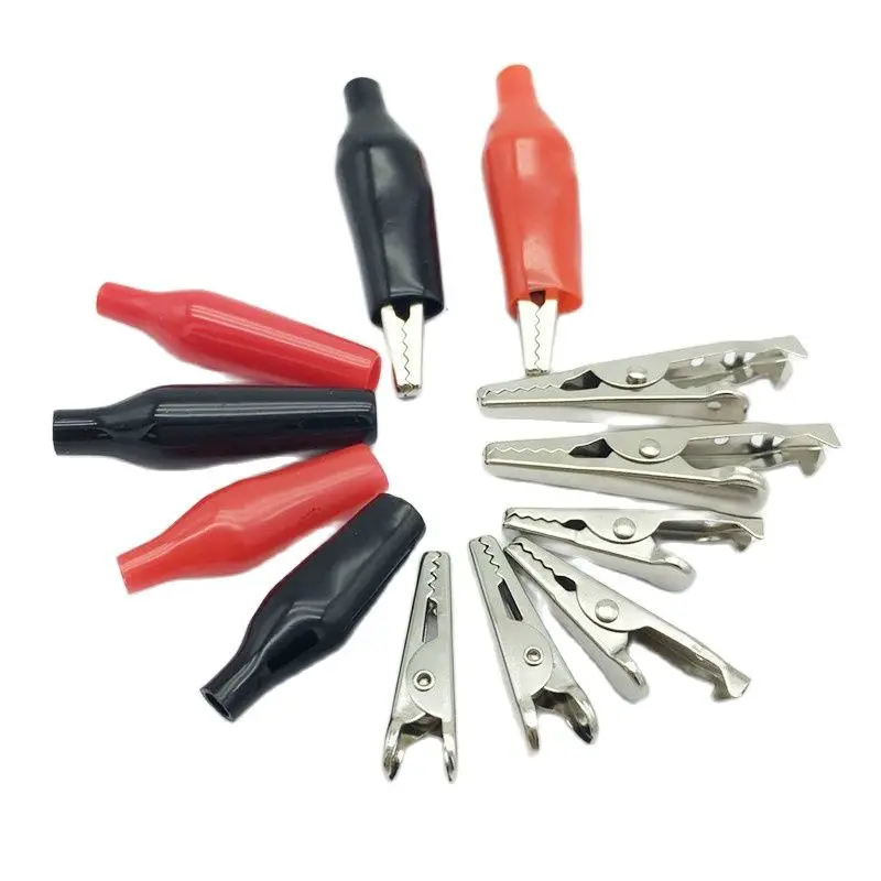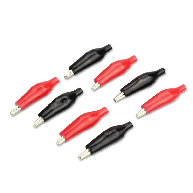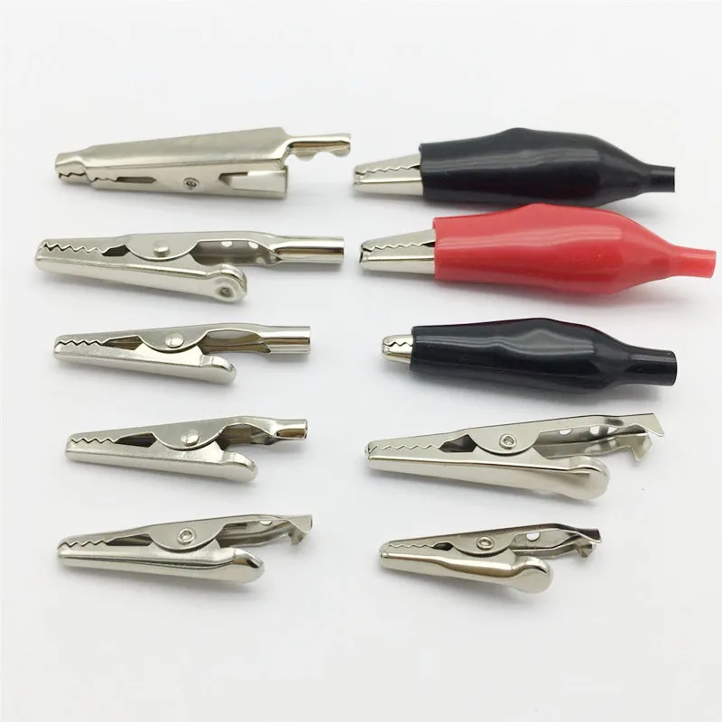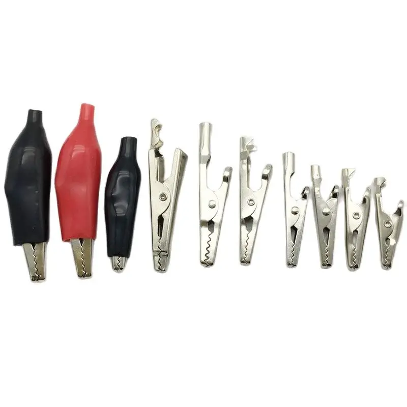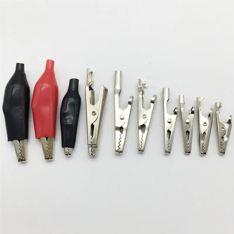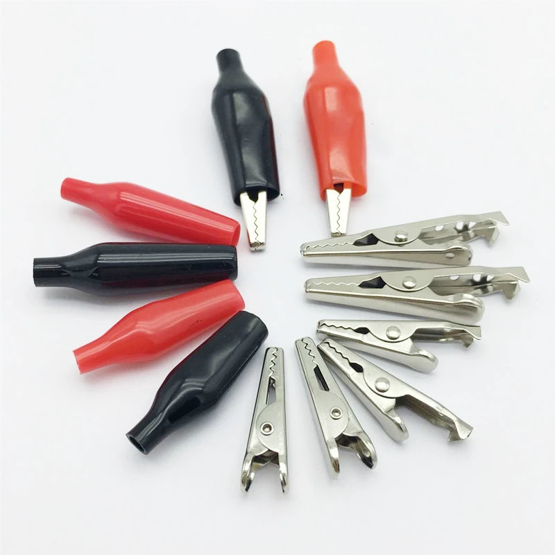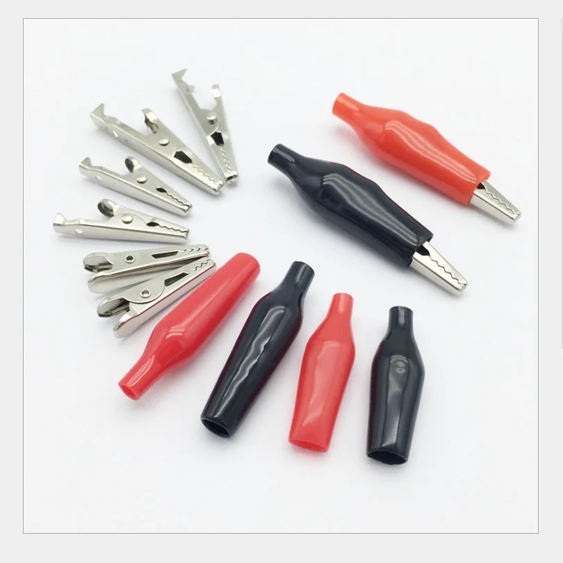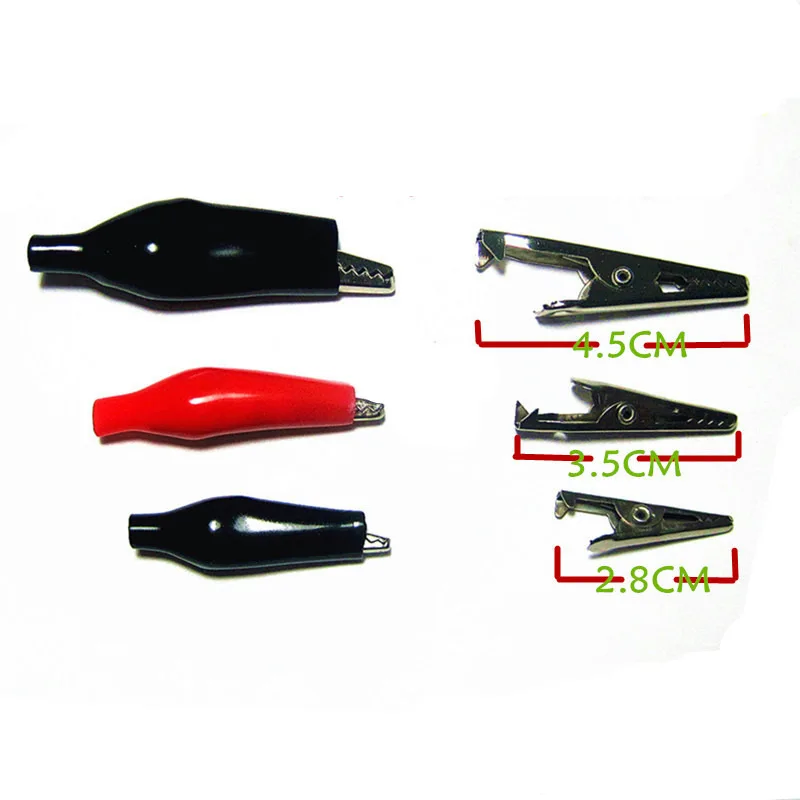 Зажим типа крокодил, 20 шт., 28 мм, 35 мм, 44 мм, красный, черный, металлический, изолированный, пружинный, тестовый зажим для электрического щупа
