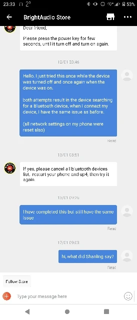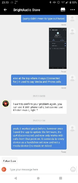 Worked great till I downloaded the app and updated the firmware. once I updated the device could no longer be recognised over Bluetooth as a media device, only handsfree (calls only) Contacted the store, where they just stopped responding to me. Moral of the story, just buy from Amazon, it's easier to return. (second time a UP4 stopped working)