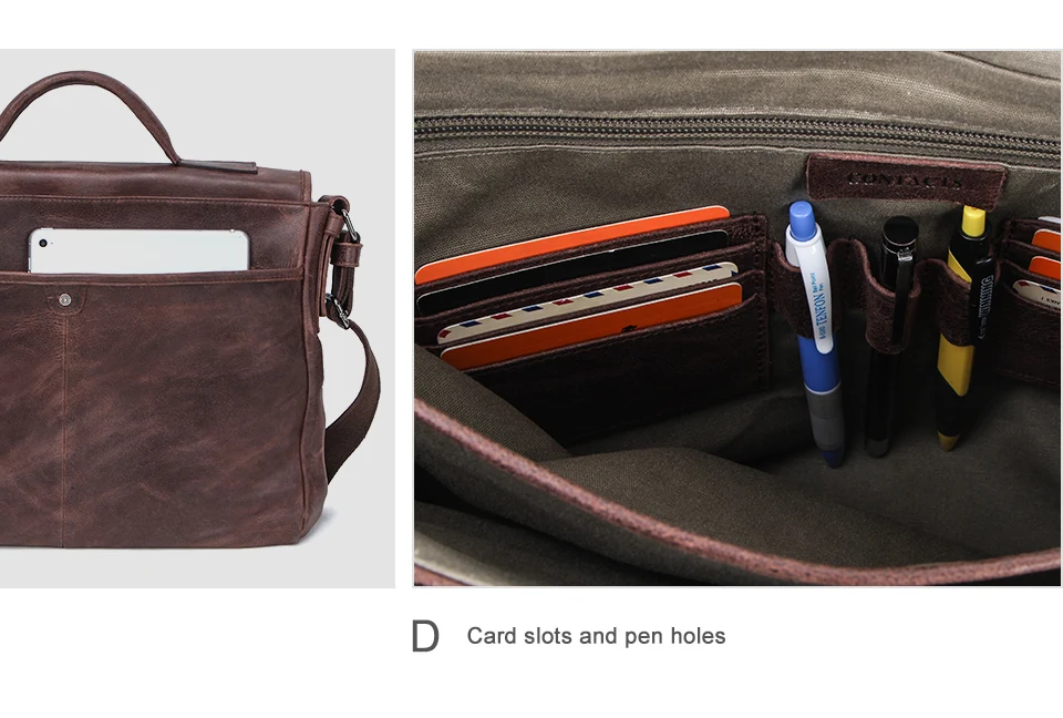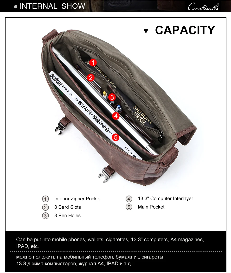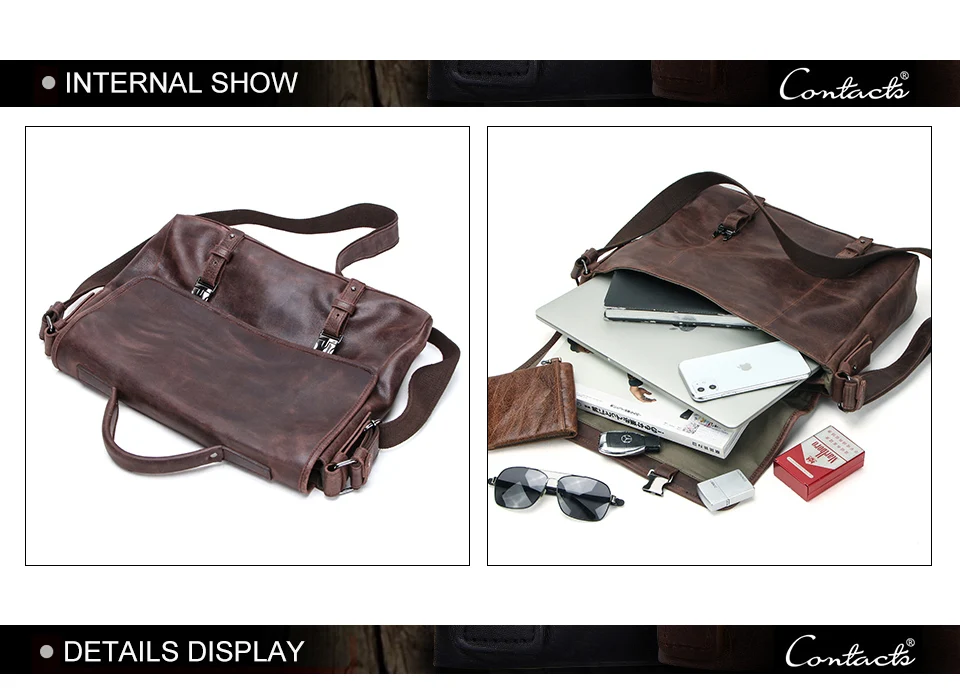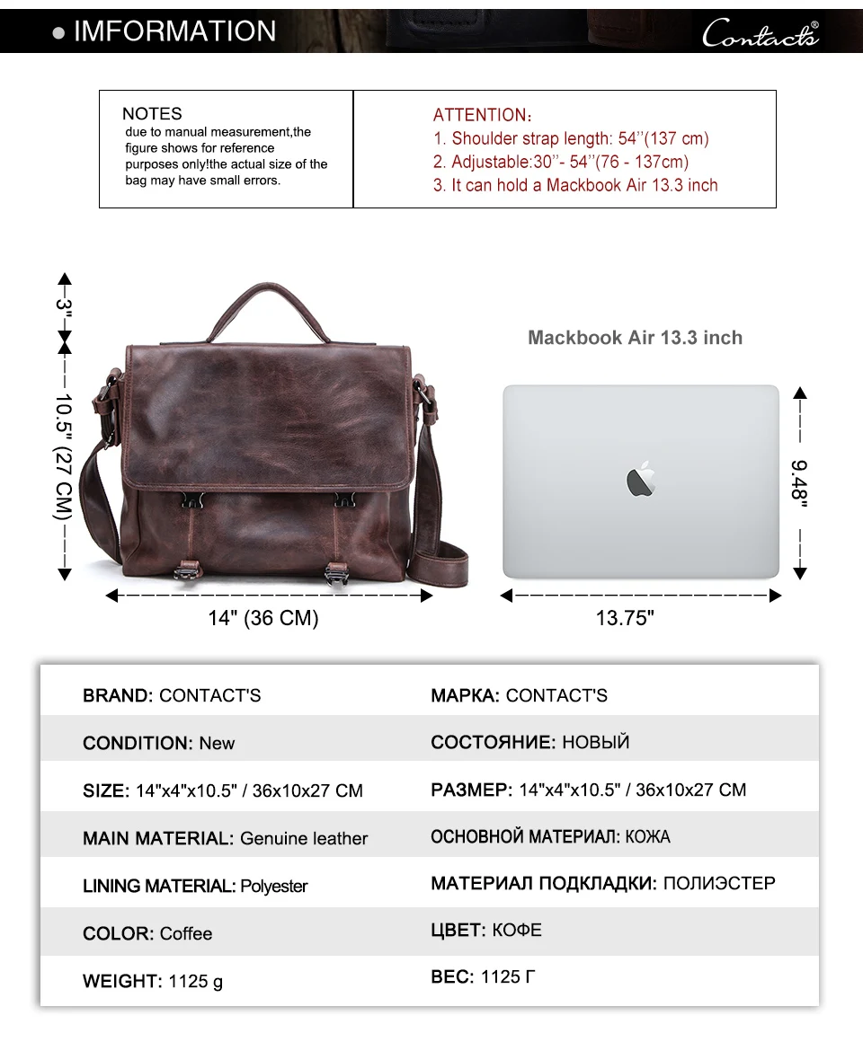 Мужская повседневная сумка CONTACT'S, из натуральной кожи, деловая сумка для ноутбука