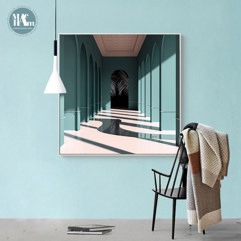 Настенные картины Maeham в скандинавском стиле с зеленым изображением коридора, постеры печати на холсте для гостиной, столовой, современного декора
