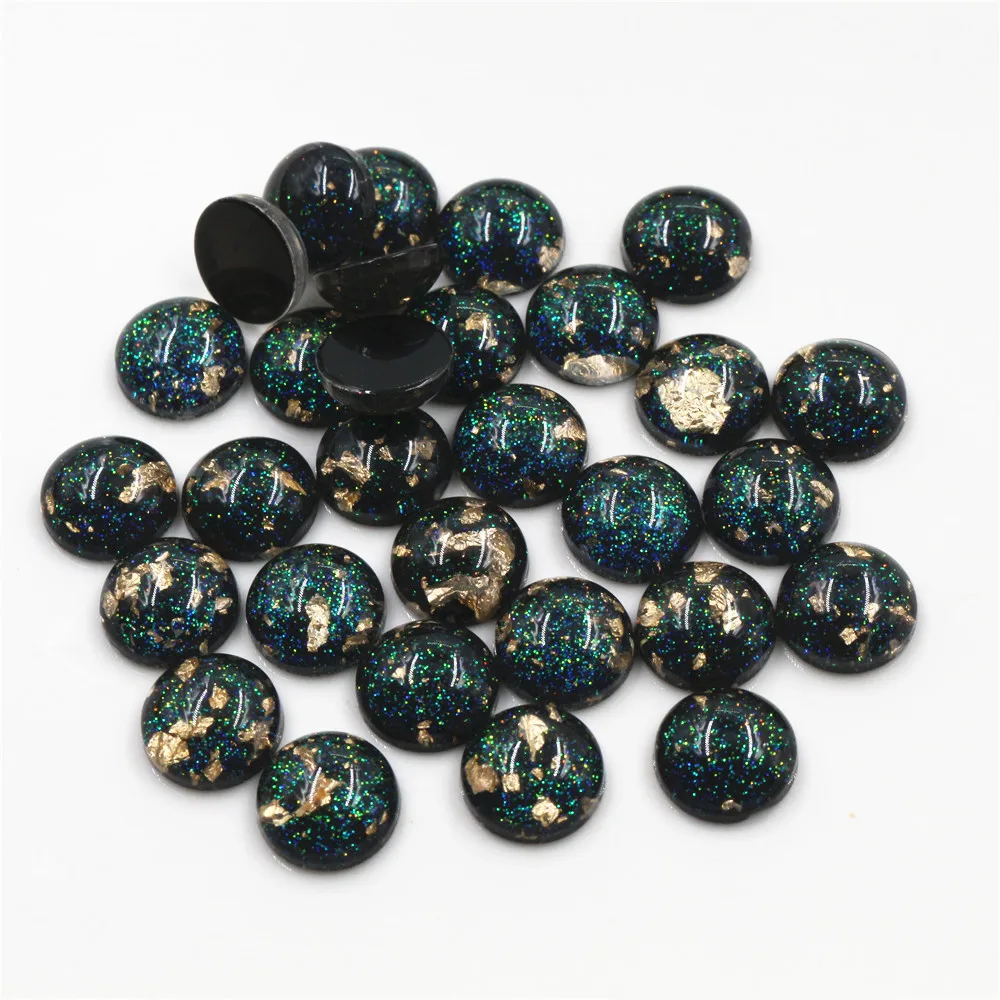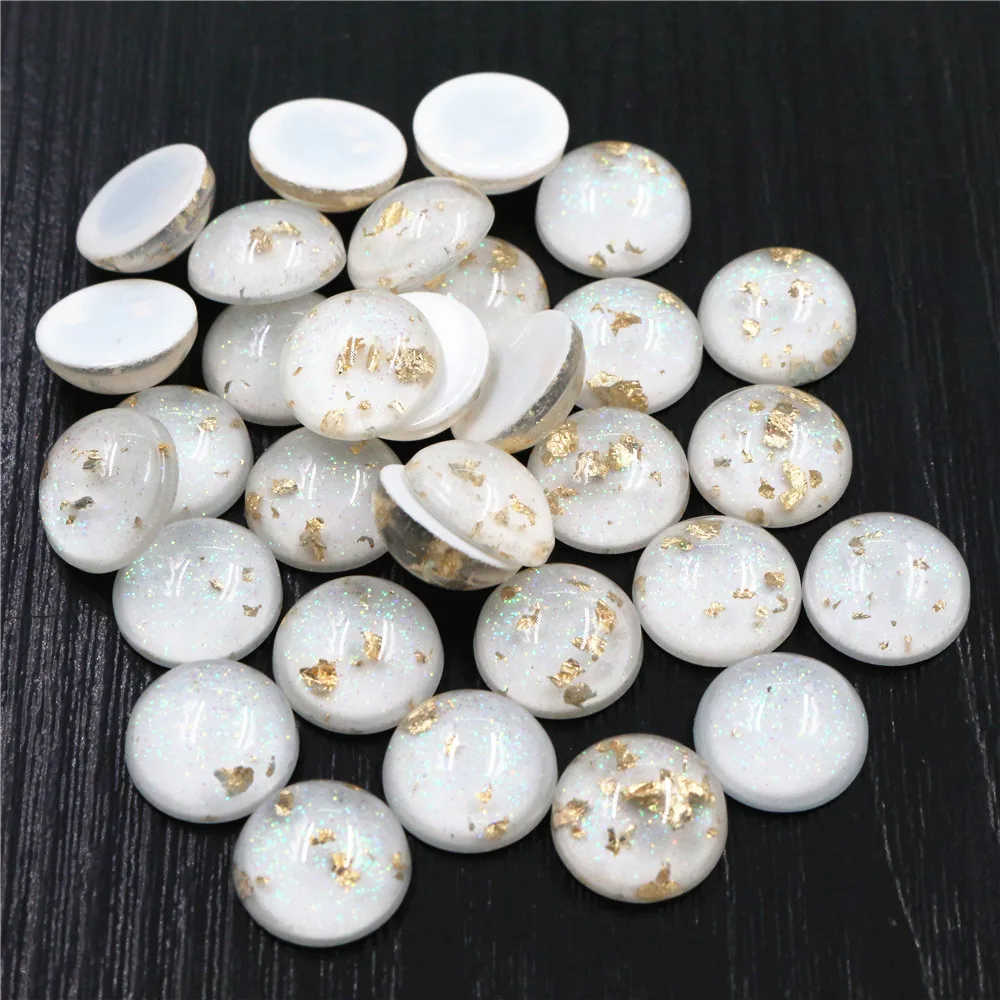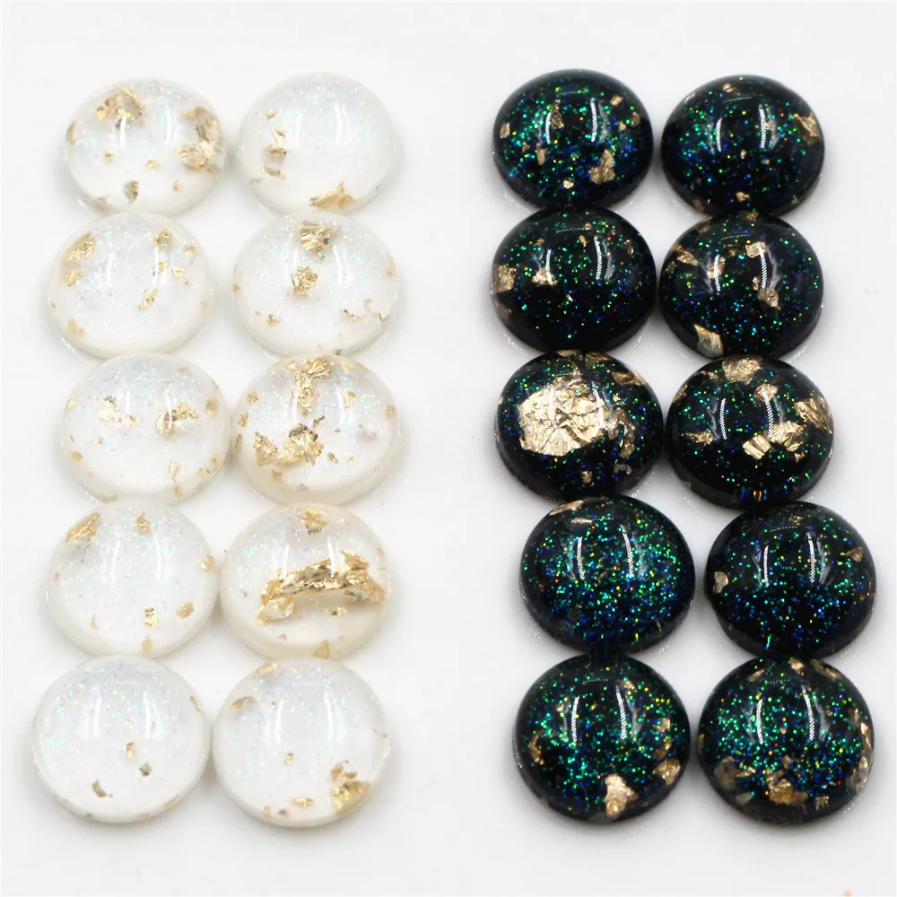 Новый стиль 40 шт 12 мм 10 мм 8 мм Черный Белый Встроенный золотой цвет лист стиль плоские задние кабошоны из смолы подходят 8-12 мм камео Кабошоны
