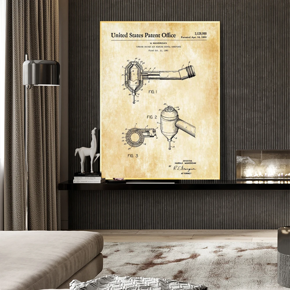 WANGART Стоматологическая дрель, печать, стоматологическое зеркало, офисный декор, медицинские инструменты для искусства, стоматолог, резиновая плотина, искусство на холсте, Настенная картина, домашний декор