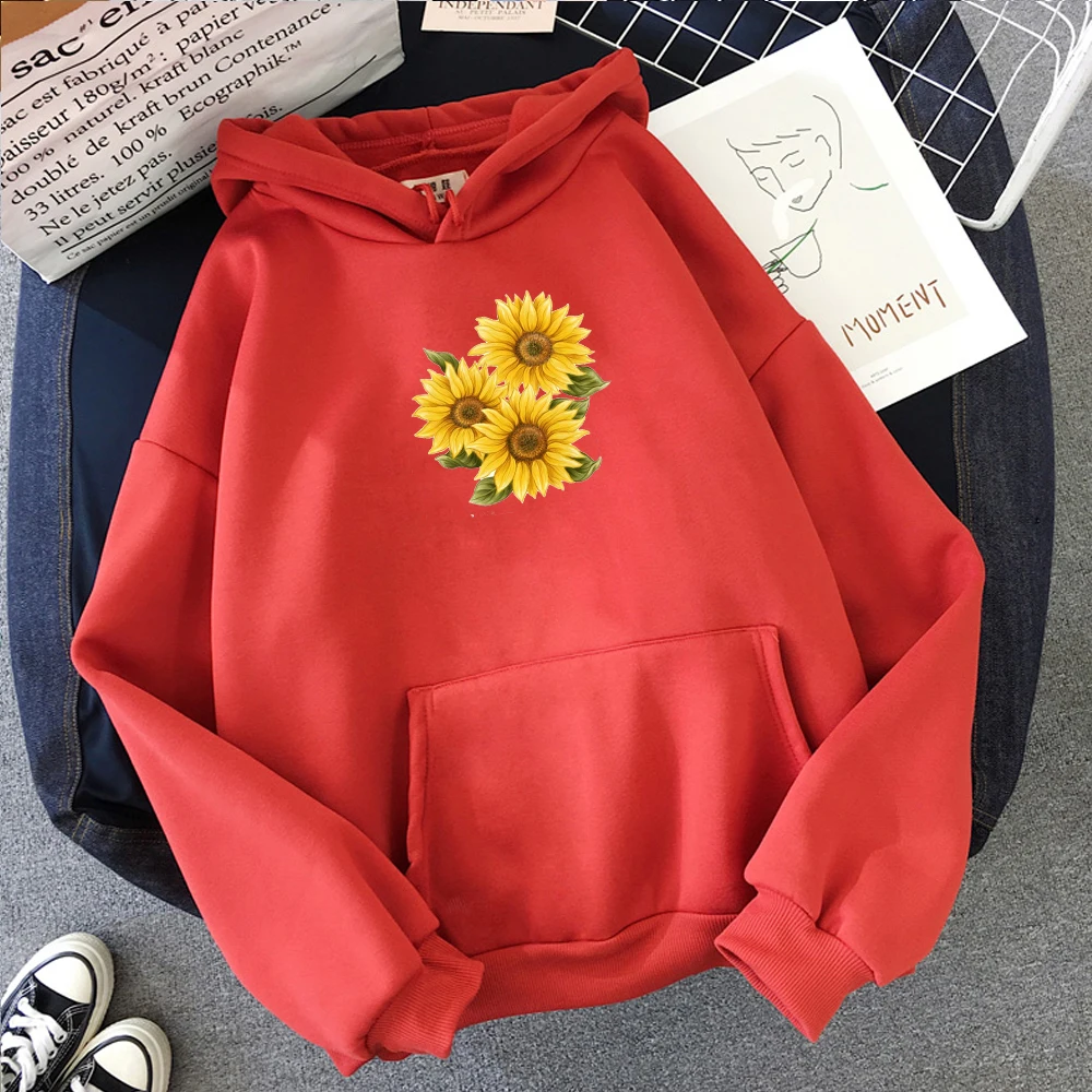 Толстовки с капюшоном для женщин Harajuku зимняя одежда с длинными рукавами, детская одежда Подсолнух из двух предметов: толстовка с капюшоном и рисунком в Корейском стиле; Модная уличная одежда пуловер Топ M-2XL