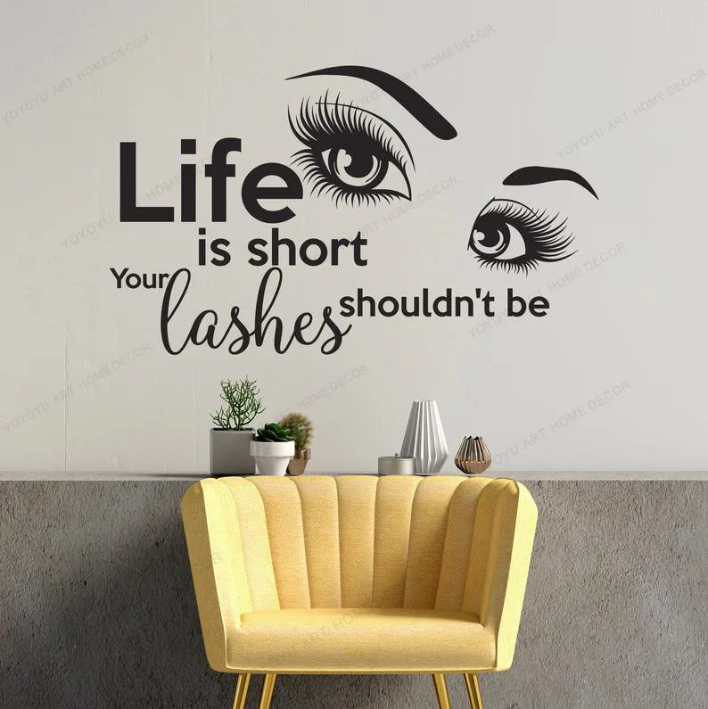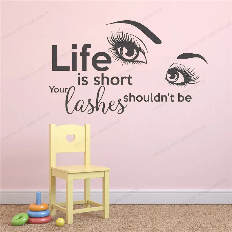 Декоративные ресницы для салона красоты глаза девушки, Жизнь короткая, ваши ресницы не должны быть, Настенная роспись, макияж, студийные ресницы DecalWU348