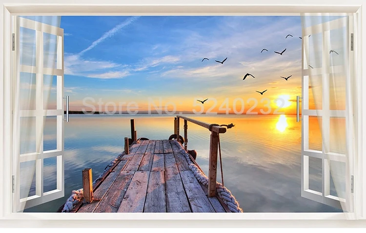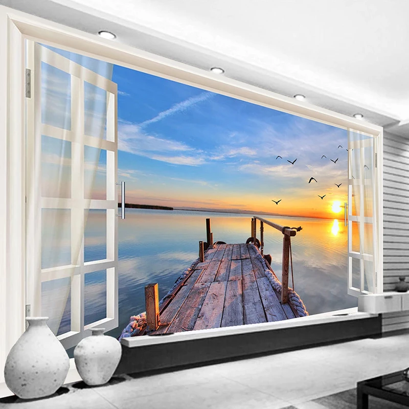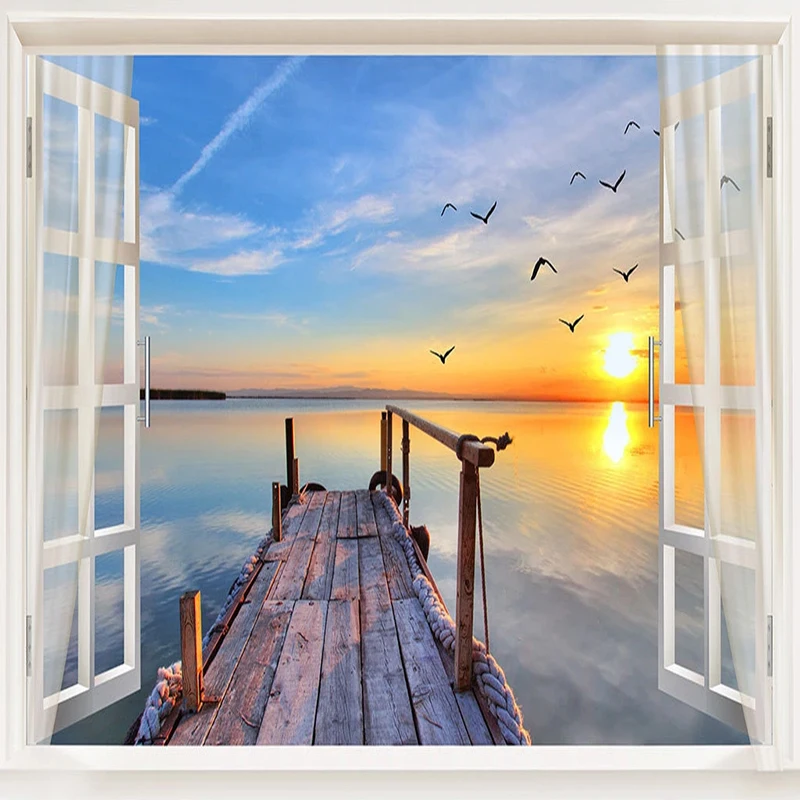 Настенные 3D-обои по фото по индивидуальному заказу, с окошком, видом на море, природным ландшафтом, современные обои для гостиной, дивана, фона за телевизором, домашний декор