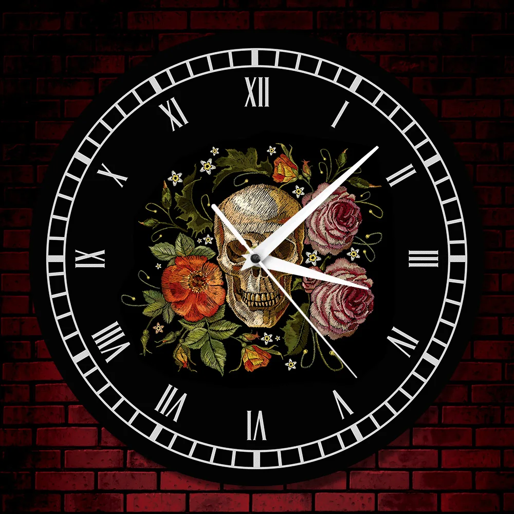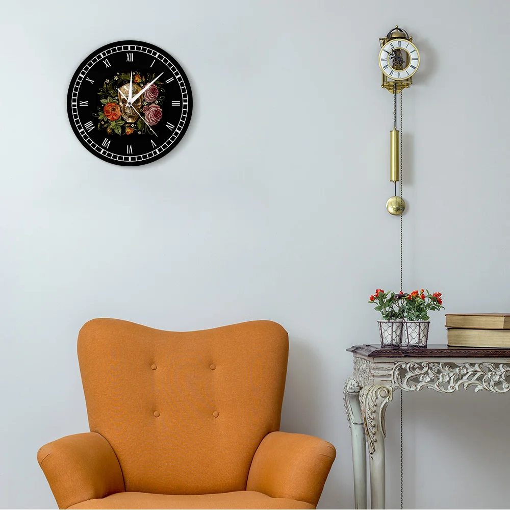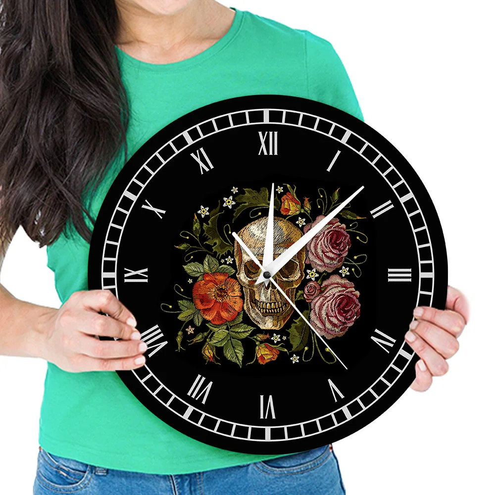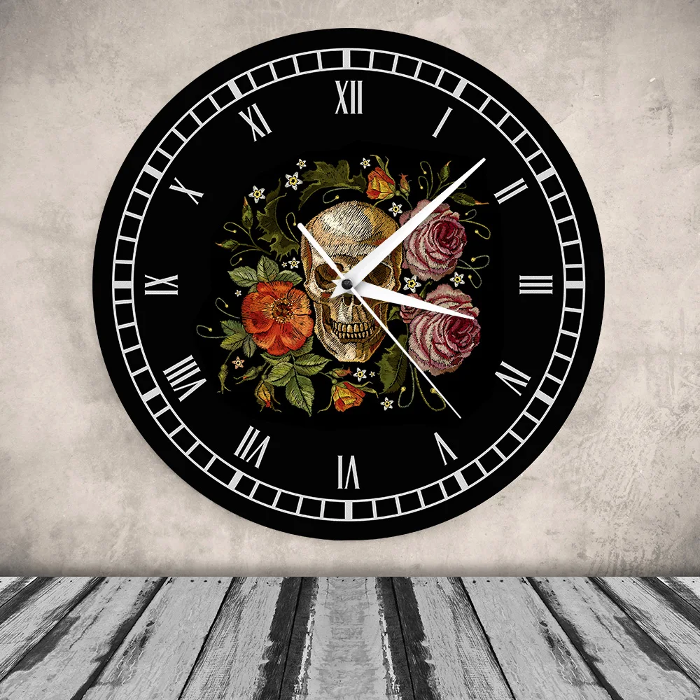 Настенные часы с рисунком черепа и розы, старинные школьные тату-наклейки, черепа, зла, убийца, боди человека, скелет, кость, Винтажные Украшения