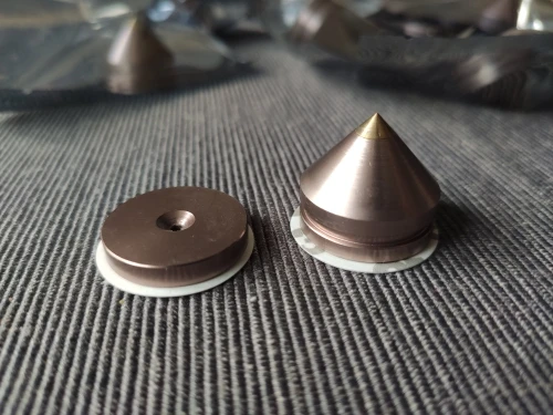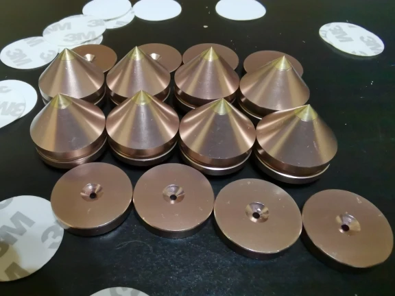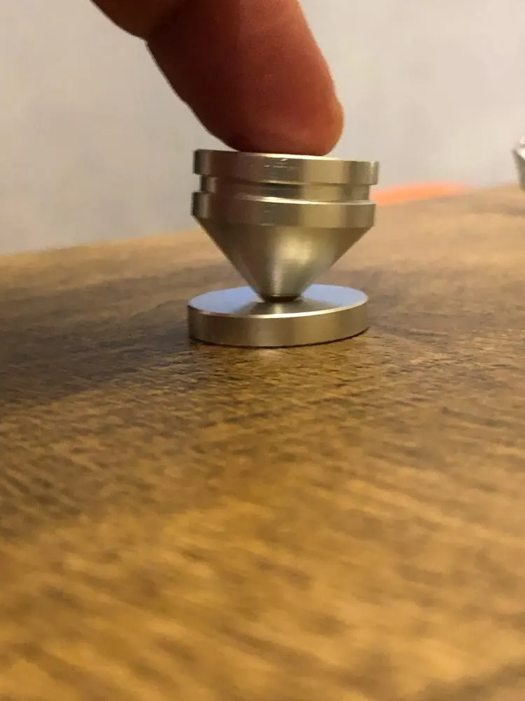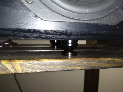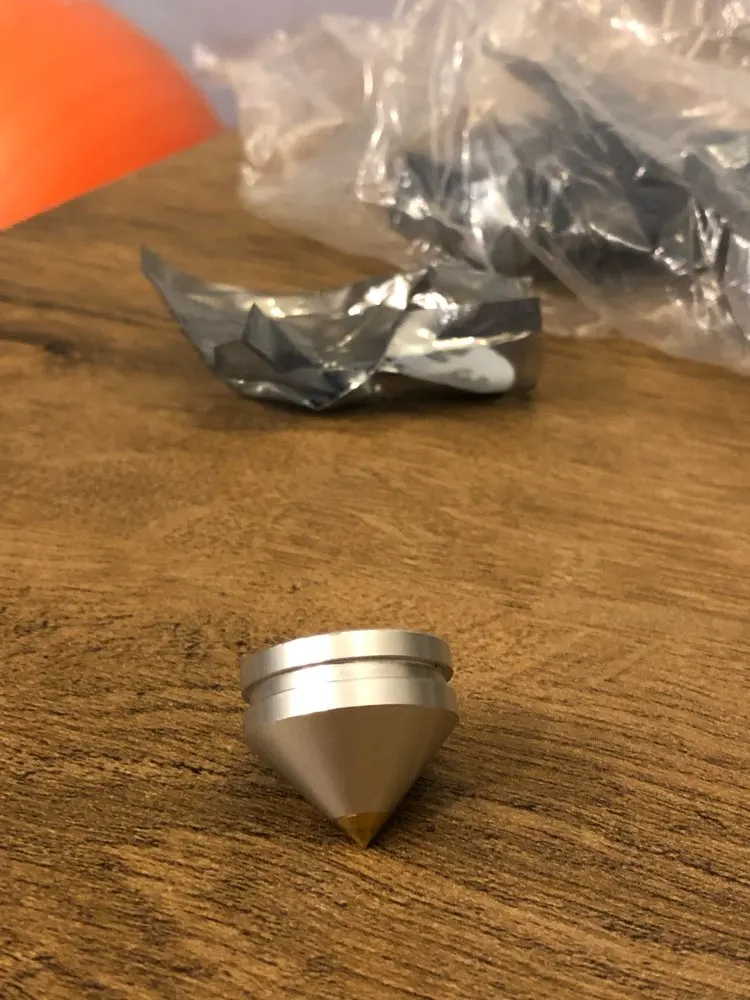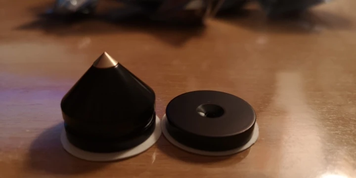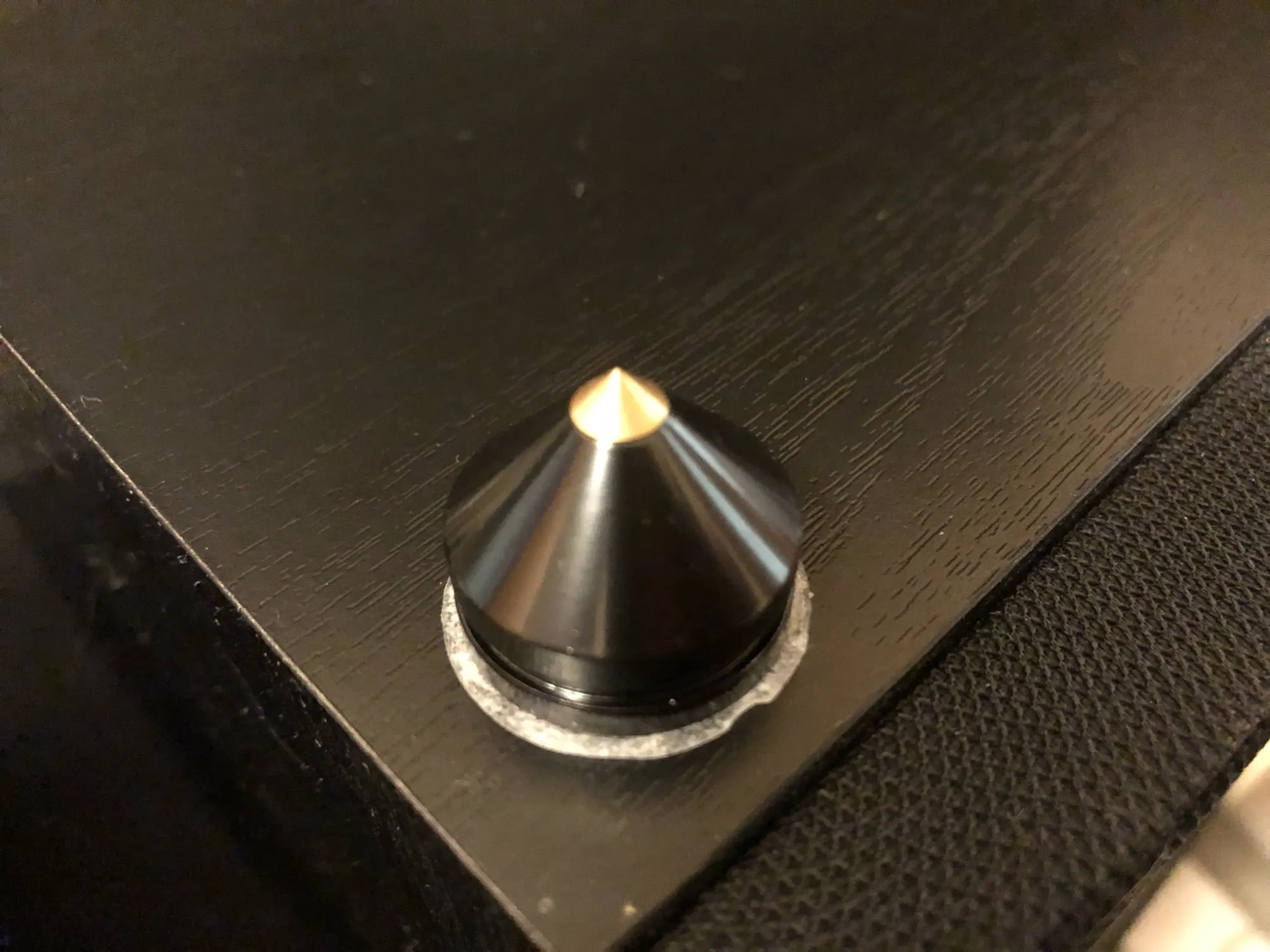 Неоднократно и много лет покупал шипы с шайбами для акустической развязки. По качеству изготовления эти лучше всех. Но в опоре есть сквозное (!) отверстие около 1мм диаметром. Поэтому шип будет опираться не на точку, а на окружность диаметром. Как это повлияет на звук пока не знаю. Проверю, отпишу позднее.