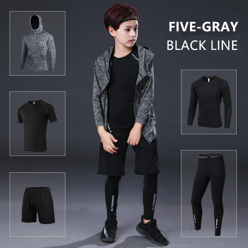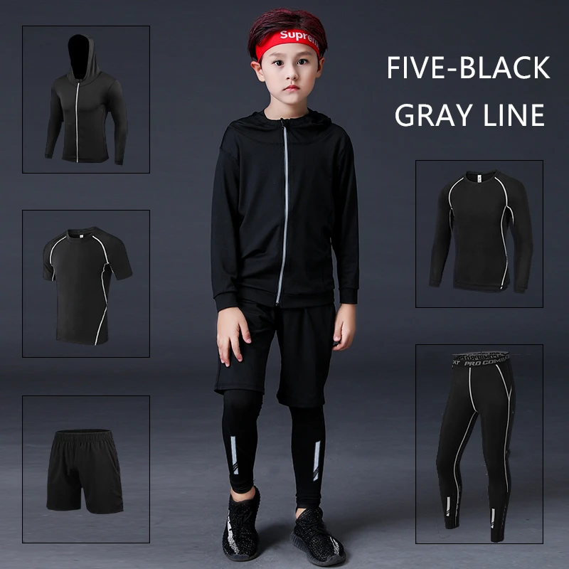 Детский спортивный комплект для бега, 5 шт., мужской спортивный костюм, спортивная одежда для бега, трико для спортзала, футбольный тренировочный костюм, тренировочная одежда