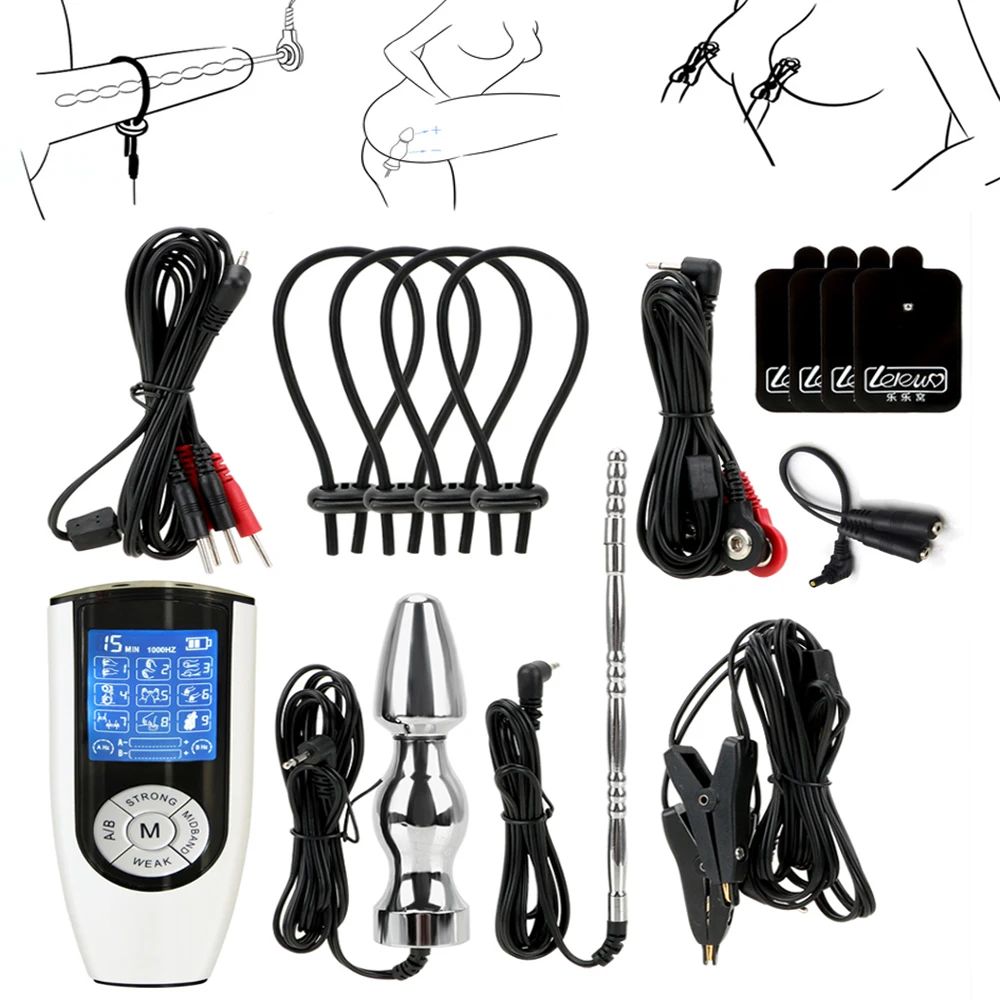 Анальная пробка, катетер для уретры, зажим для сосков, Стимуляция клитора, массаж тела, кольцо для пениса, секс-игрушки для взрослых, набор для пары с электрошоком