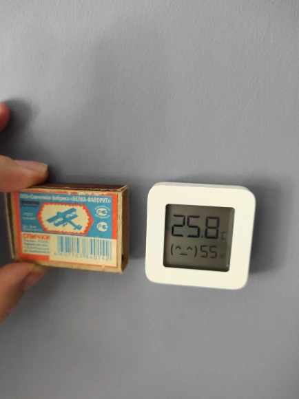 Быстрая доставка, до Красногорска 2недели. Работают, оба показывают одинаковые данные в одних условиях. Через mi home можно посмотреть историю и настроить сценарии. У нас пока других умных предметов нет, можно настроить отправку сообщения при превышении показателей. Сами датчики меньше, чем думала, приложила фото со спичечным коробком. Батарейка уже выставлена, при распаковке надо вытянуть пленочку, чтобы контакт пошел. Так же есть двухсторонний кусочек типа скотча для крепления к стене.