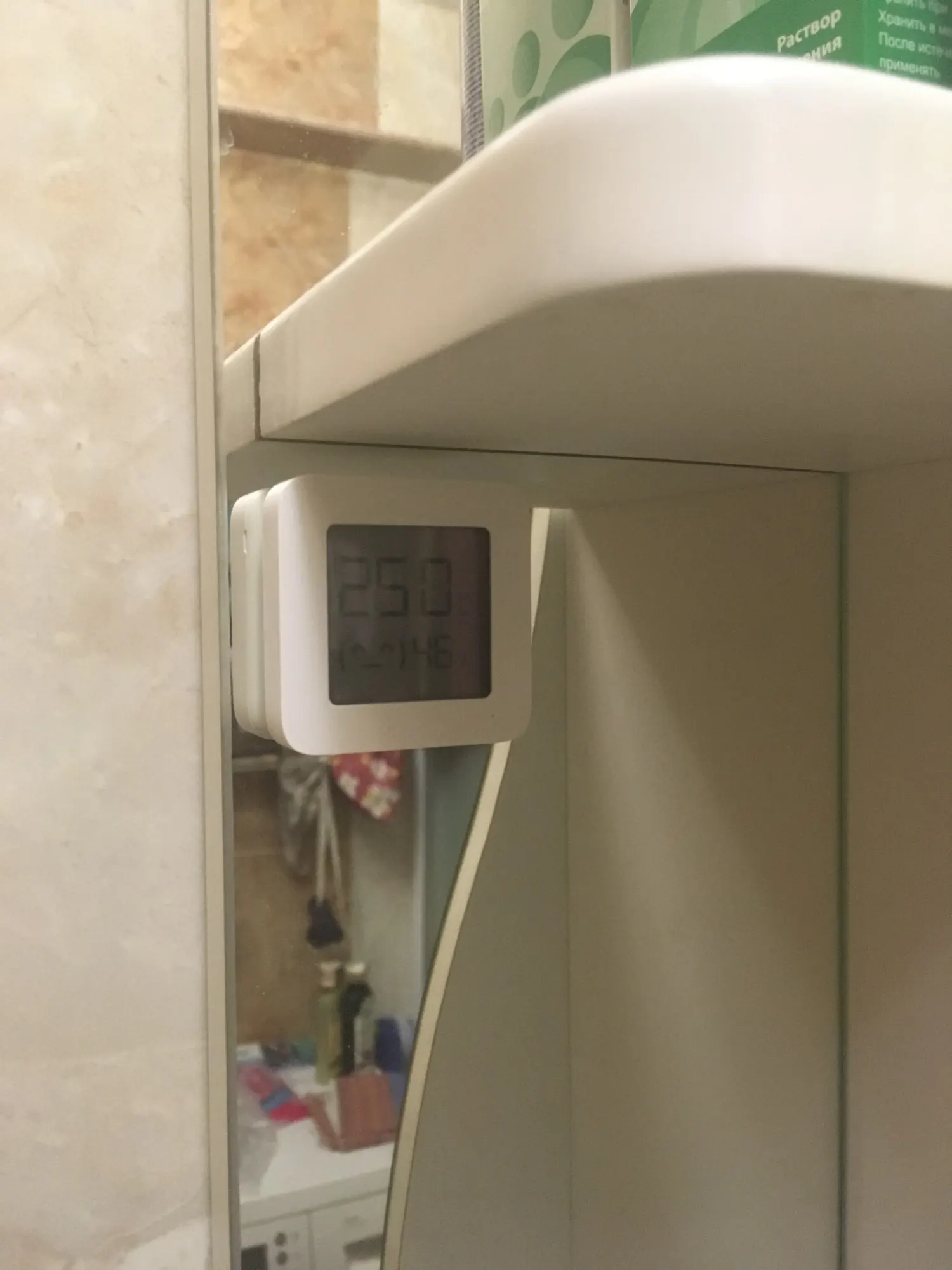 Показания совпадают с другими термометрами. Влажность отображает выше, чем дешёвые китайские устройства. В комплекте батарейка и скотч для крепления на стену.