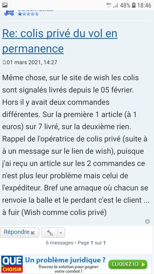 Produit jamais reçu et non remboursé