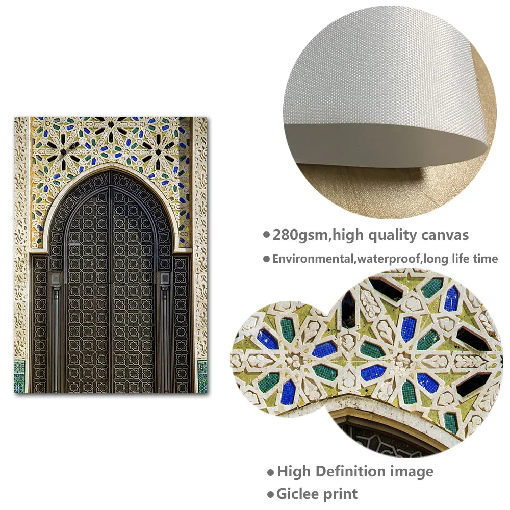 Исламский бежевый плакат пейзаж холст печать мечеть Марокканская дв...