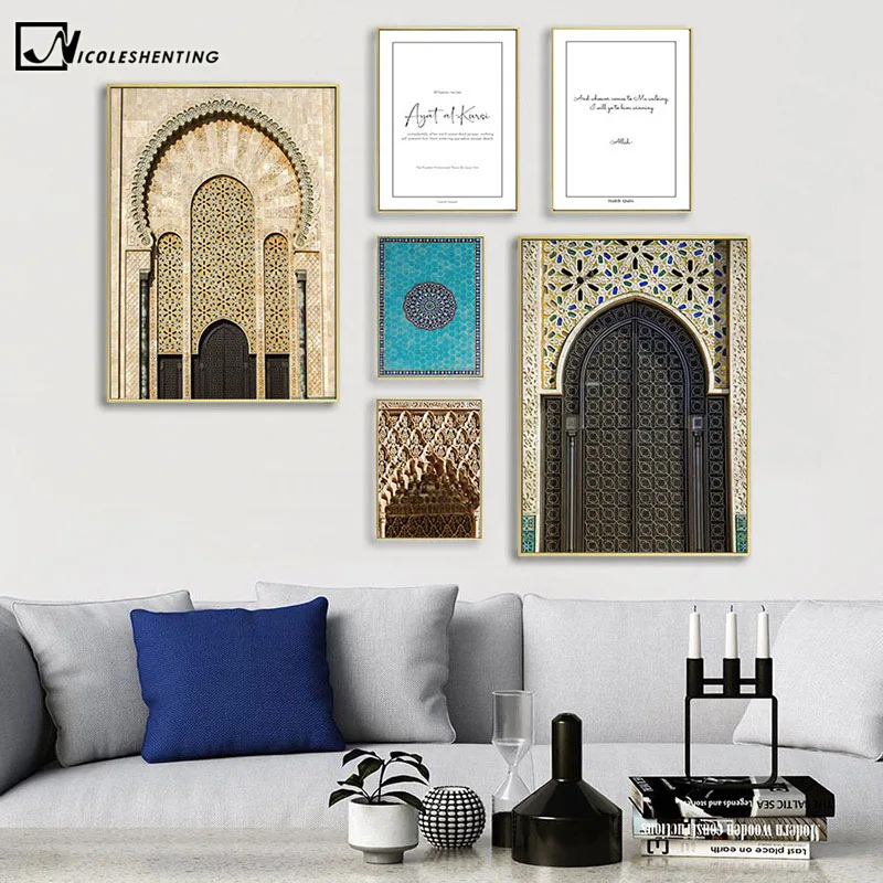 Марокканская арка Холст Картина Исламская художественная стена с ци...