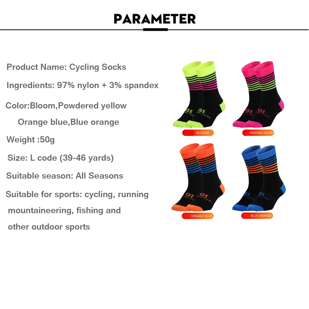 Позиционирование продукта: Все спортивные носки • Вес: 50 кг Цвет: цвести, порошкообразный желтый, оранжевый синий, синий оранжевый Спортивные носки: подходят для различных видов спорта Особенности: Дышащие и впитывающие пот Нескользящая обувь Удобные и мягкие, средней толщины, носки во все сезоны Характеристики: один размер L (EU39-46, US7-10) Хорошая эластичность, подходит для длины стопы 24-27 см Эффект: сжатие, дышащий, впитывающий пот, износостойкий, антибактериальный Индекс эластичности: высокая эластичность Подходит для случаев: почти для всех видов спорта в помещении и на открытом воздухе, таких как Велоспорт, бег, баскетбол и Пешие прогулки. Различные особенности, Лучшая цена
