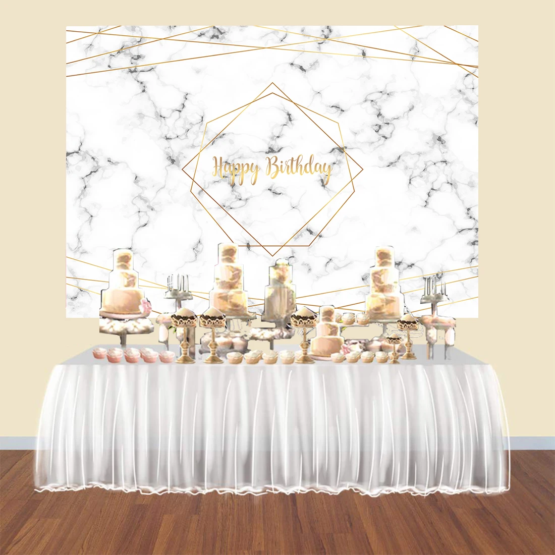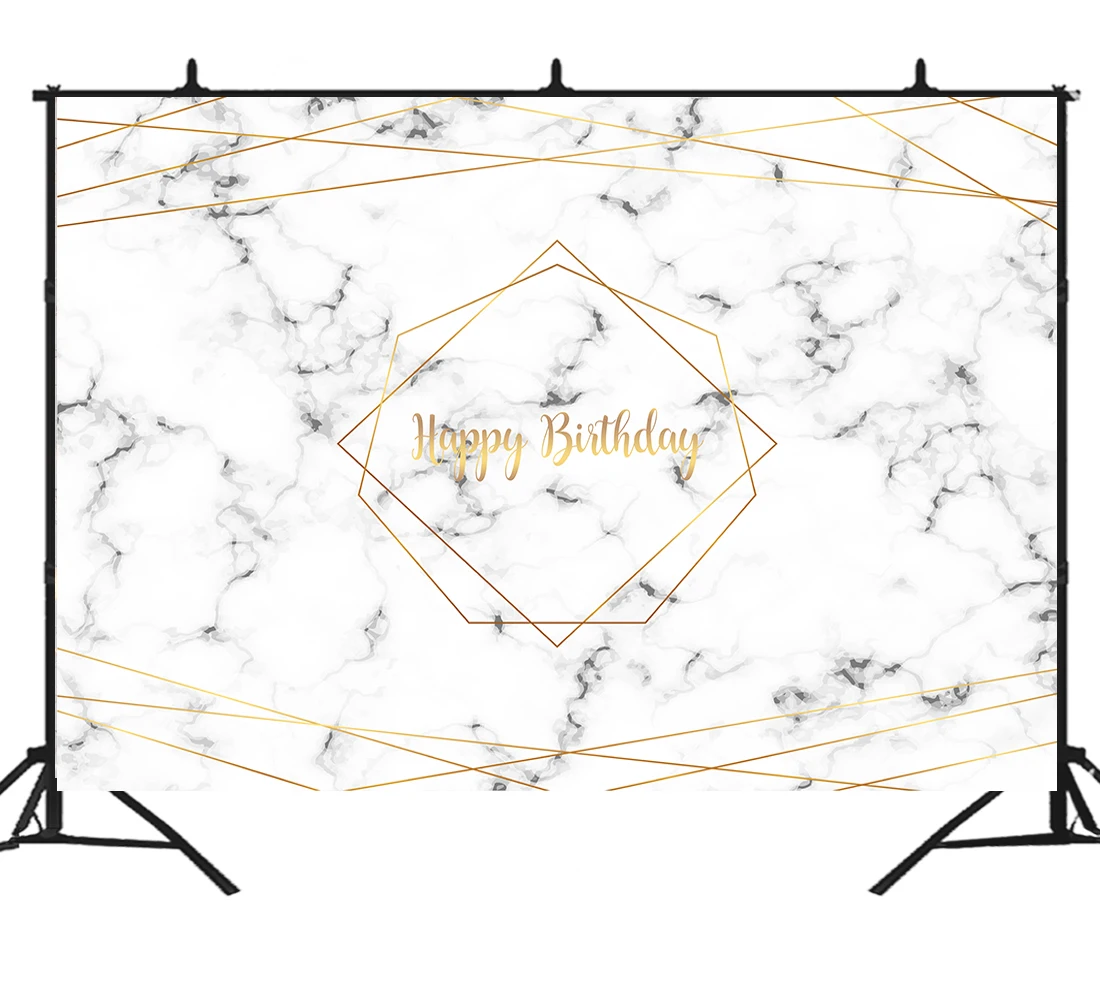 Фон с украшением в честь Дня Рождения, мраморный баннер, золотая линия, фон для фотосъемки детей, для взрослых, фотостенд, десертный стол