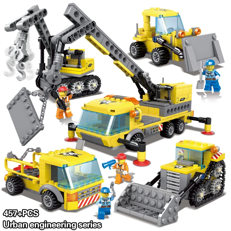 6 в 1 тяжелой кран городской строительный пожарный автомобиль истребитель транспортер бульдозер экскаватор строительные блоки кирпичи игрушки для детей