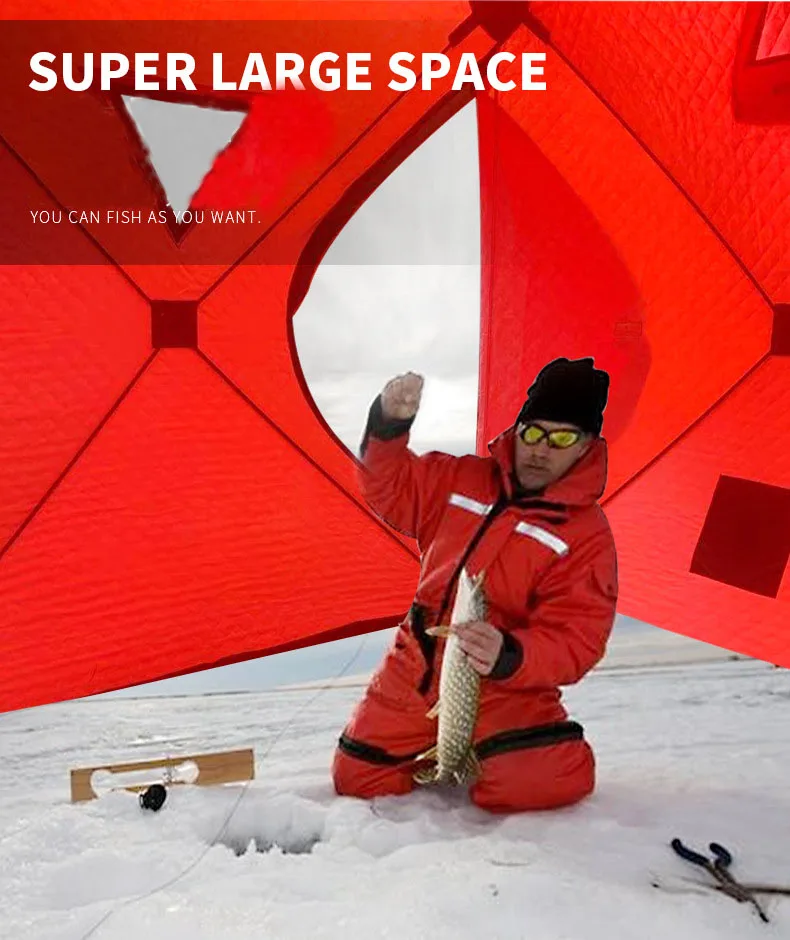Большой размер, на 3-4 человек, с автоматическим открытием, с нажимом, плюс утолщенная, теплая, из хлопка, для улицы, для подледной рыбалки