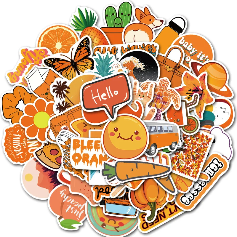 50 шт.компл. теплые оранжевые наклейки Vsco пицца фрукты пегатина для ноутбука телефон чемодан для скейтборда девушка водонепроницаемый стикер
