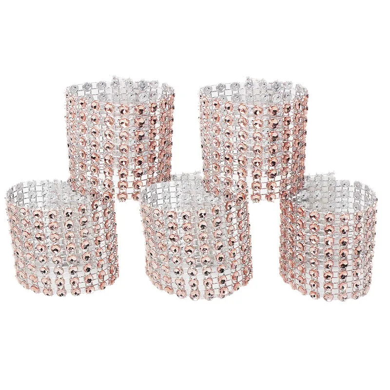 Пряжки-кольца для салфеток, цвета розового золота, серебра, 10 шт., для украшения свадебных событий, банты со стразами держателей, товары для вечерние ручной работы