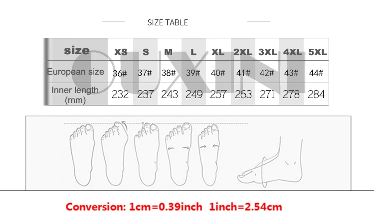 Внимание! Пожалуйста, выберите правильный размер, мы предлагаем китайский размер для справки. Если вы не уверены в своем размере, Измерьте длину стопы или свяжитесь с нами. Спасибо!