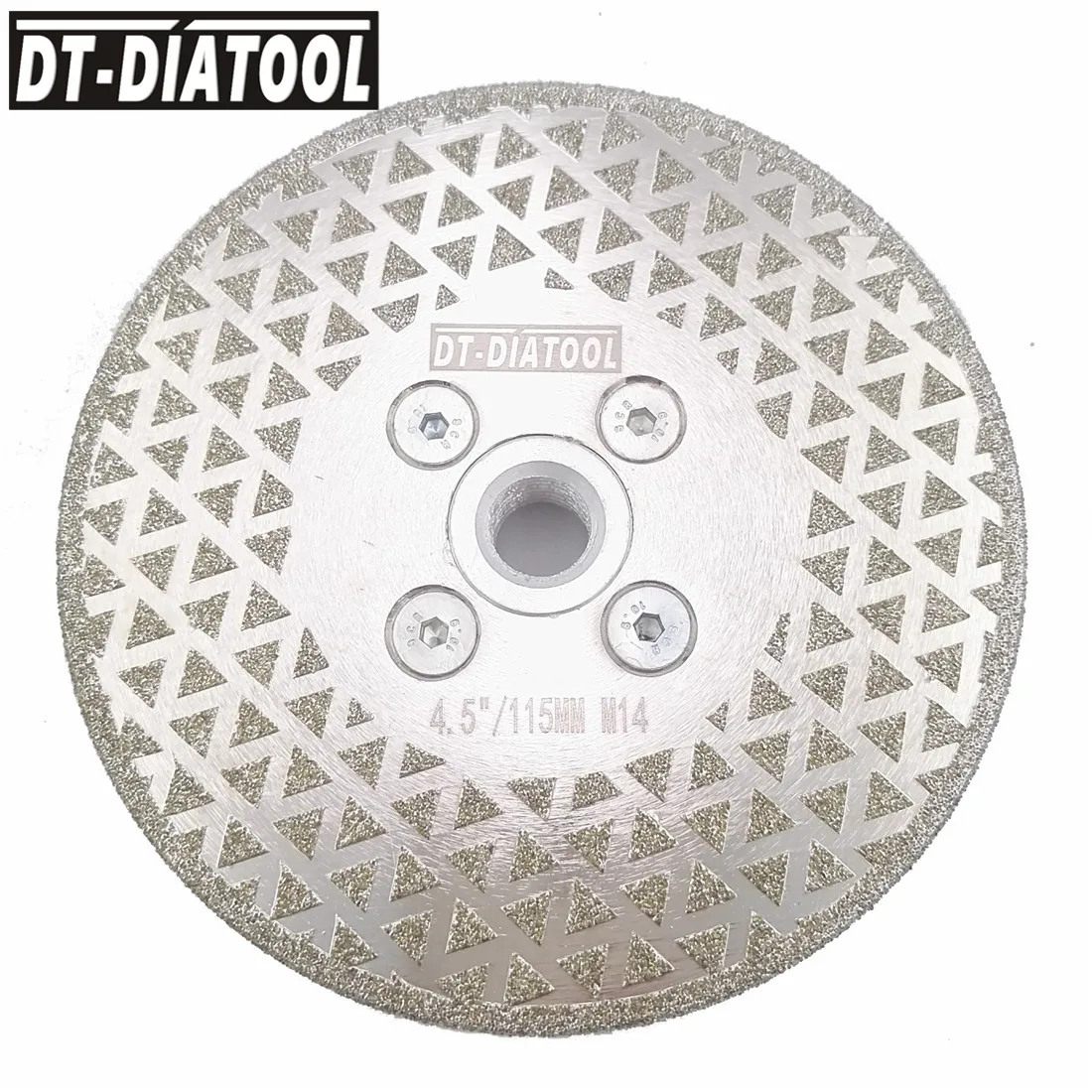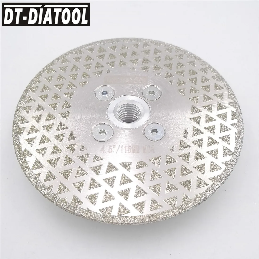 DT-DIATOOL 1 шт., фланец M14 диаметром 115 мм4,5 дюйма, гальванизированный алмазный режущий диск, шлифовальный круг с двусторонним покрытием, пильный диск для камня
