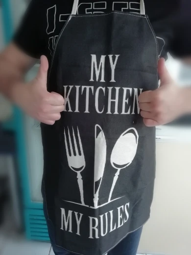 Качество фартука отличное, но с размером чуть чуть промахнулась, на муже он смотрится крохотным)