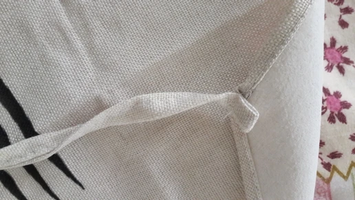Le tablier n'est pas en lin ni en coton (fibres plastiques)
