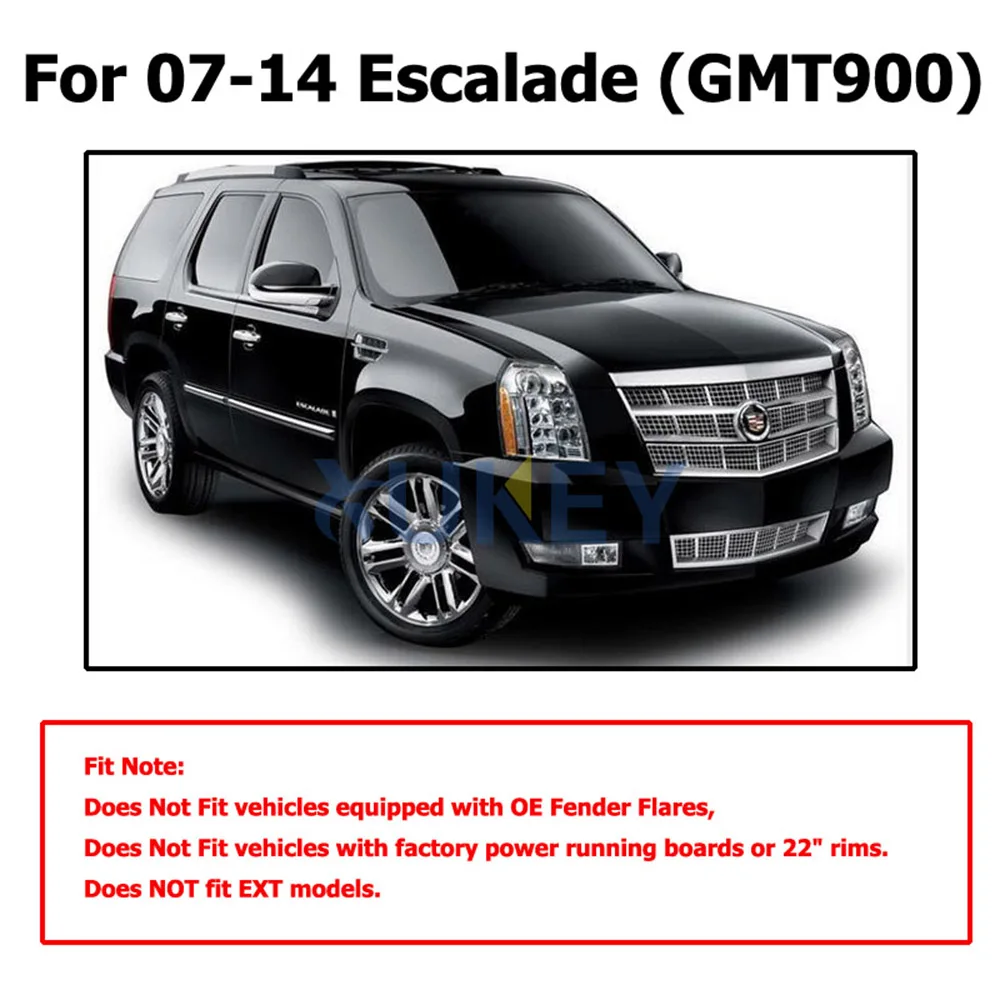 XUKEY Deluxe формованные Брызговики обеспечивают отличную защиту нижней части тела и акцентируют стиль автомобиля. Изготовлен из TPO пластика, чтобы быть жестким и paintable. Они отлиты под контуры транспортного средства для пользовательской посадки Эти износостойкие Брызговики органично сочетаются со стилизацией транспортных средств и минимизируют риск попадания грязи, мусора и каменной стружки на передние и задние шины. Обеспечивает дополнительную защиту при одновременном усилении спортивной экстерьера вашего автомобиля Бренд: XUKEY Применимость:Для Cadillac Escalade 2007-2014 GMT900 (не подходит 2015-)