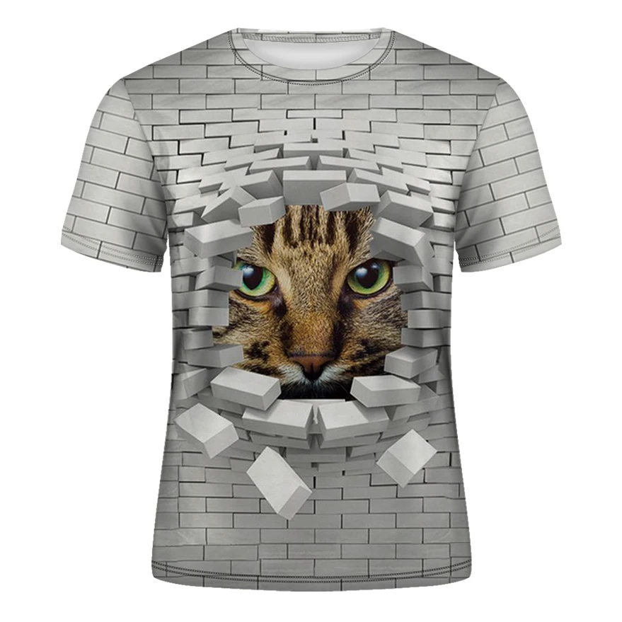 3D модная футболка с изображением животного для мужчин и женщин 2020 летняя повседневная спортивная мужская футболка с коротким рукавом и принтом кота