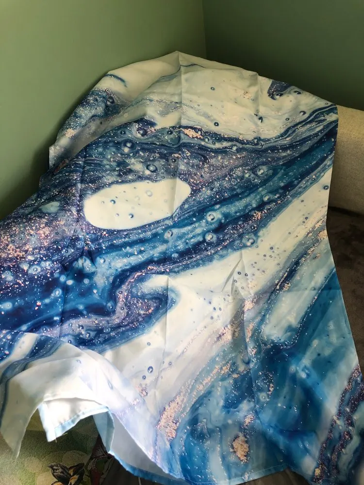 Очень красивый, как на картинке. Ткань очень мягкая, и узор выглядит красиво. К сожалению, мы неправильно интерпретировали измерения и считаем, что они 2 метра в ширину, но они действительно были высокими.