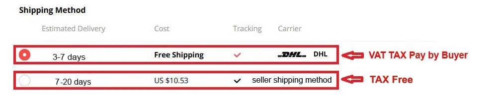 1. Таможенные пошлины и налоги являются обязанностью покупателей. Если вы из Европы, выберите «способ доставки продавца», покупатель не должен платить Таможенный налог