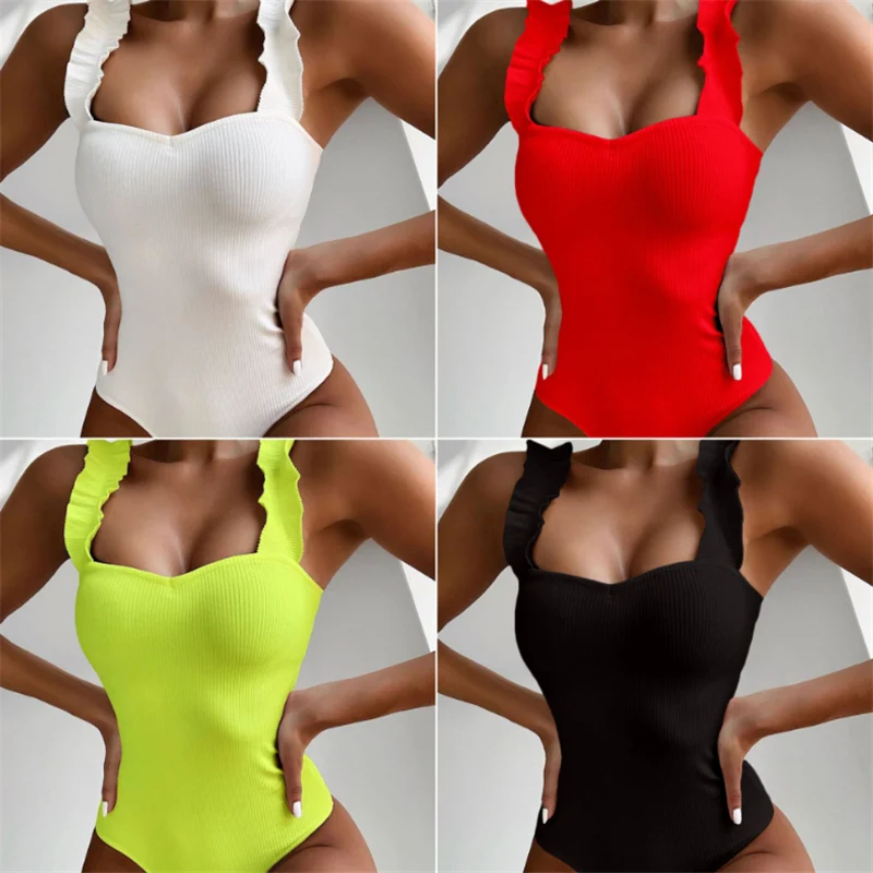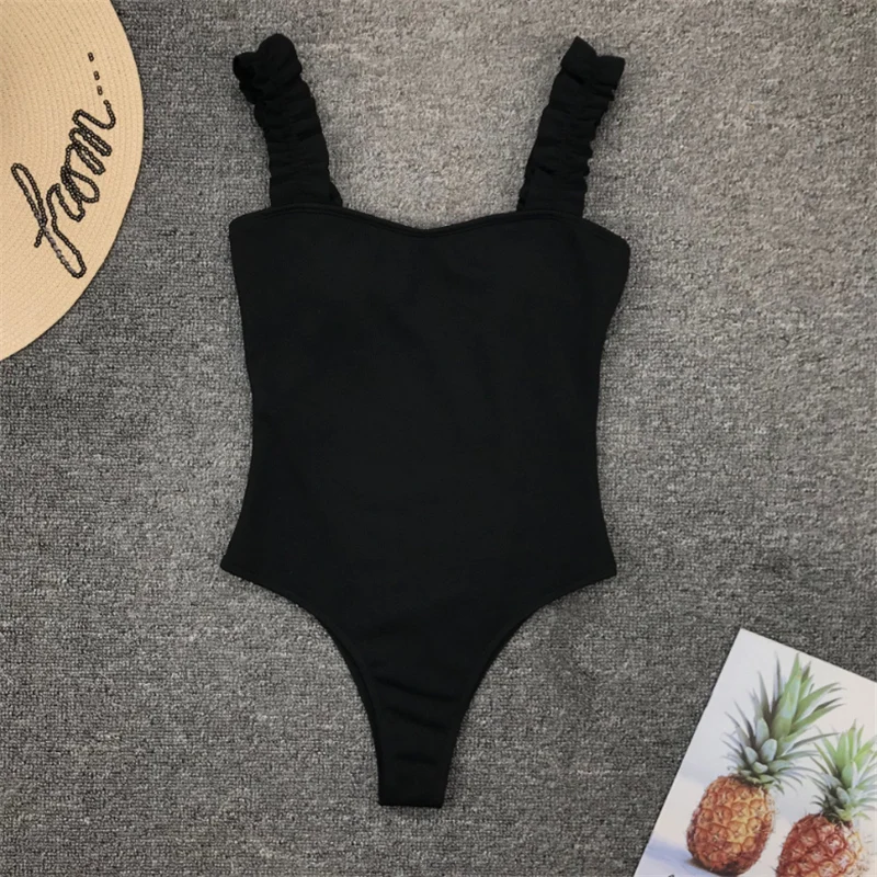 Женский слитный купальник GNIM, бикини пуш-ап, однотонный, с рюшами, с высокой талией, лето 2020