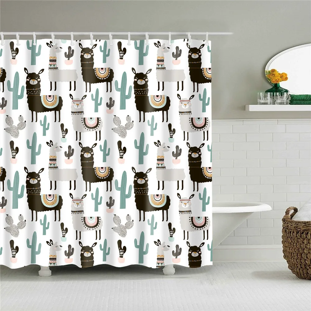 Занавеска для душа из полиэстера, водонепроницаемая, с милыми живот...