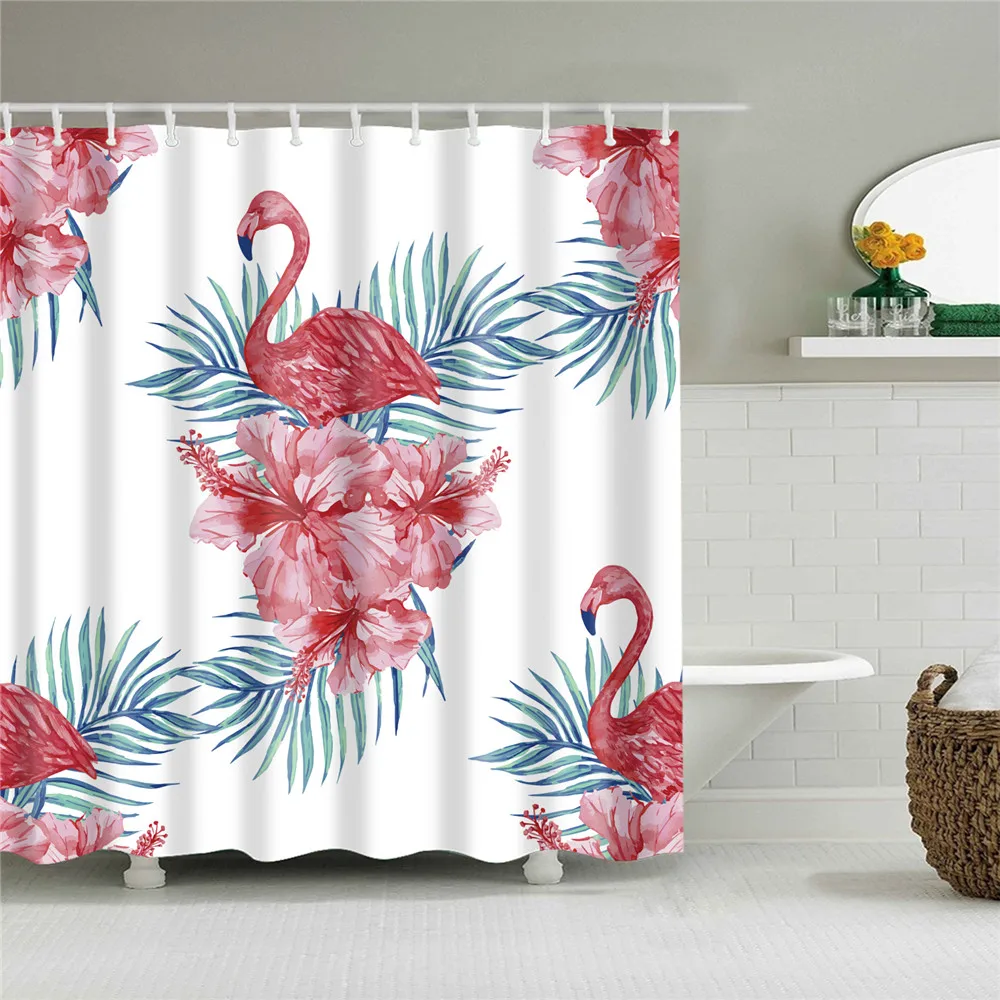 Занавеска для душа из полиэстера с принтом фламинго, животных, кота