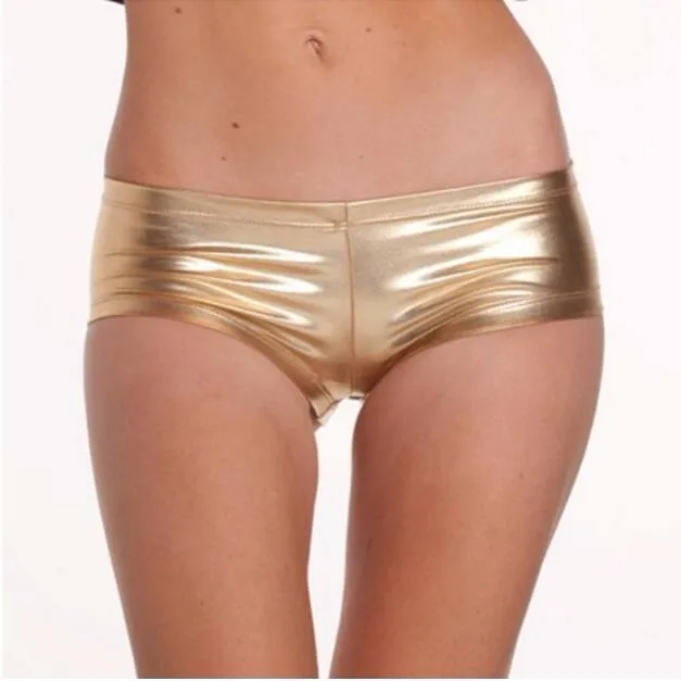Женские сексуальные шорты с низкой талией, лайкра, металлик, Рейв, для танцев, спандекс, блестящие шорты для танцев на шесте, золотые, серебряные шорты для сцены