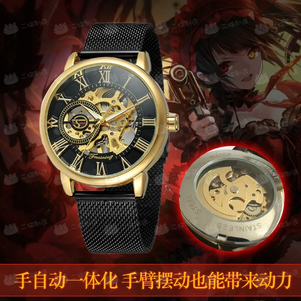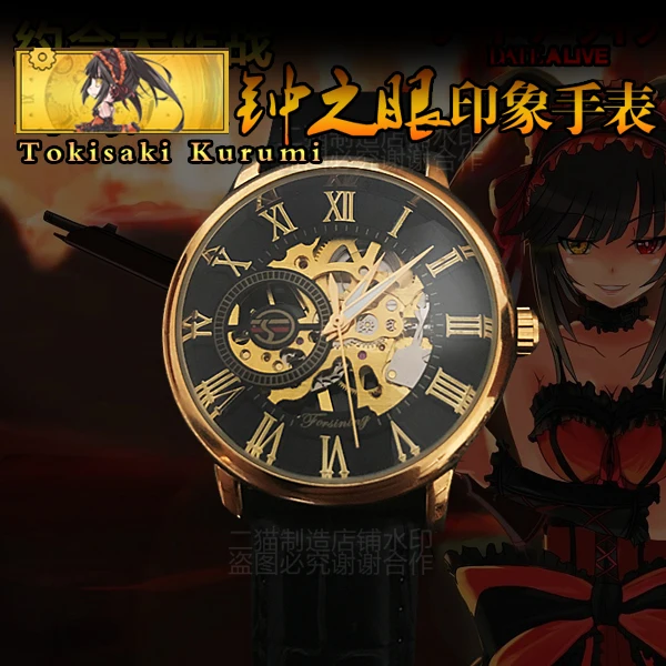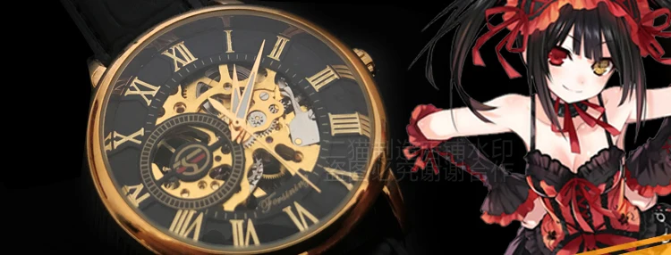 Водонепроницаемые механические часы Tokisaki Kurumi с героями аниме и даты, модные наручные часы унисекс, студенческие карманные часы, Новинка