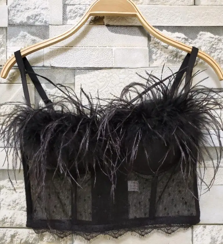 2020 сексуальная летняя женская сетчатая кружевная кофта с перьями, бюстье, кроп-топы, новые сетчатые Горячие бриллиантовые Сексуальные облегающие жилеты без рукавов
