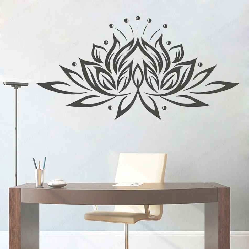 YOYOYU цветок лотоса виниловая настенная наклейка Цветочная настенная художественная наклейка Йога Студия Настенная Наклейка Декор роспись искусство Съемный Настенный постер HL96