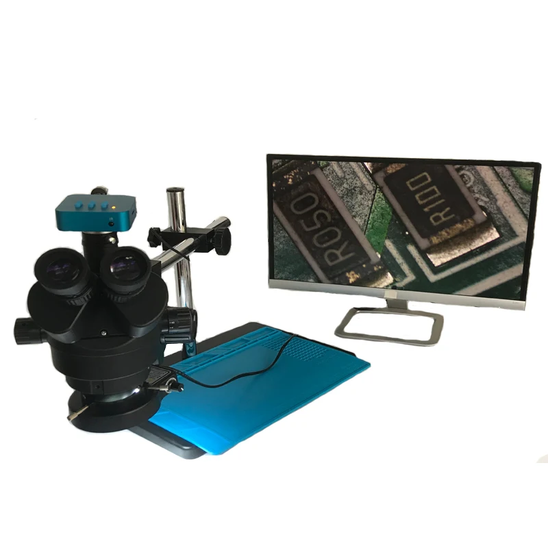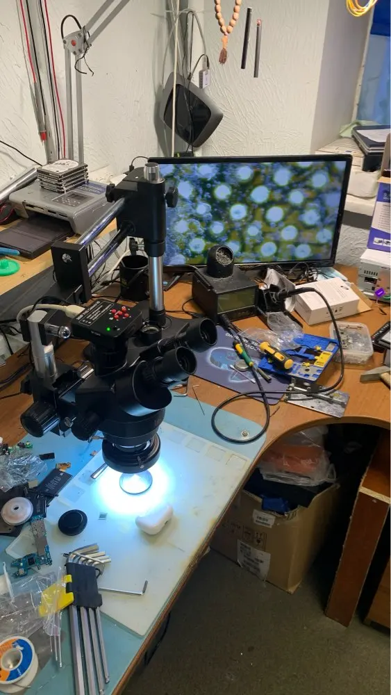 этот микроскоп просто бомба. на нем пожалуй и остановлюсь. высота рабочего места регулируется линзами. защитное стекло для нижних линз, что бы когда паяли, из за дыма не мутнело. регулировки, фокусировки. все на высшем уровне. подставка отличная. не чего не болтается, тяжёлый, стоит стабильно. выглядит на все 100 за свои деньги. камера огонь. четкое изображение. что в окулярах, что на мониторе. минусов не увидел, заказывайте смело, не пожалеете ! продавцу огромное спасибо.