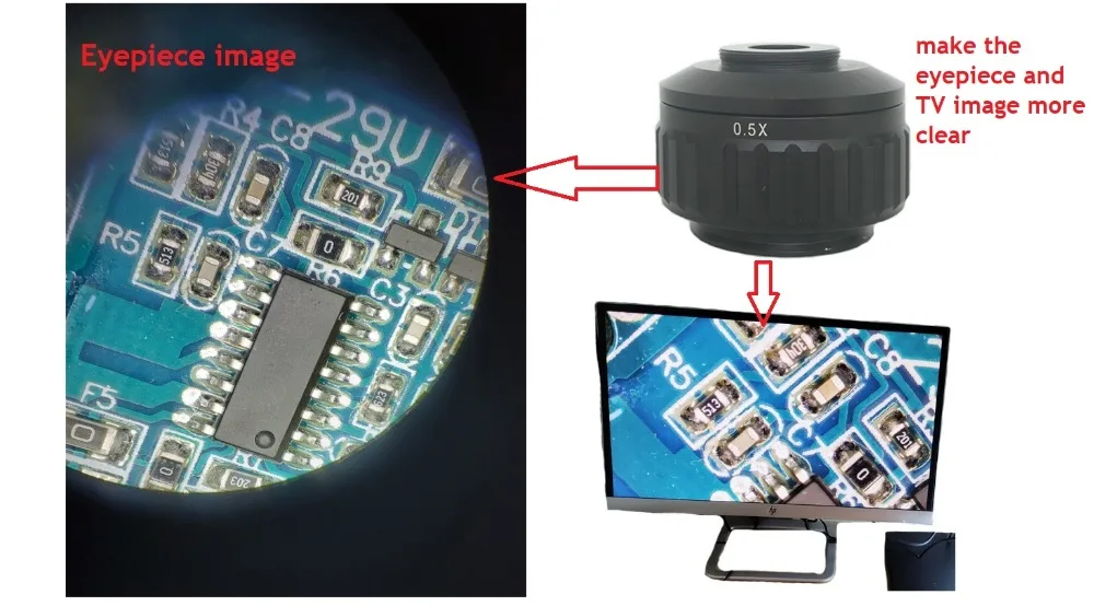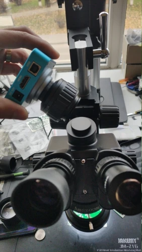 Невероятно крутой, и качественный товар. сделано очень аккуратно. Камера на 0,5 линзе не очень четко показывает, как будто светосилы не хватает (хотя в микроскопе все отлично), а вот с линзой 2x вообще замечательно, но там грип очень маленький. на линзе 2x нет защитного стекла. хотя может оно там и не нужно,т.к. паять все равно не получится под ним. 20x/10 еще не пробовал ставить, но 10x/20 с 0,5 через микроскоп очень чистенько видно. Не скажу какой фокус, но если выставить правильно 15-17 см, то можно крутить вверх вниз и все будет четко. 10x/20 и 2x прикрепил фоточки. Я не могу сравнить с другими микроскопами, потому что это мой первый серьезный микроскоп. Единственное не получилось,чтоб было все в фокусе и в микроскопе и на мониторе, хотя я еще не пробовал 20x/10 на микроскоп поставить. Ну и на правом глазу у микроскопа болтик для крепления линзы отсутствует, но это мелочь.