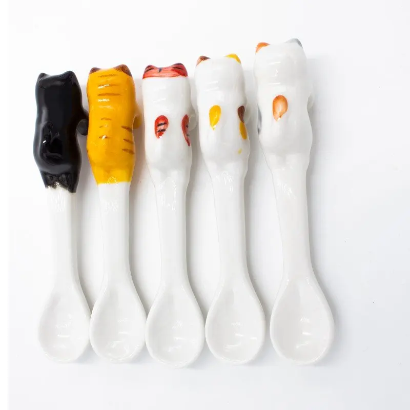 Горячая Распродажа керамическая мультяшная Милая Кошка Животное ложка висячая кофейная десертная ложка уникальный кремовые столовые приборы льда кухонный инструмент новинка подарок